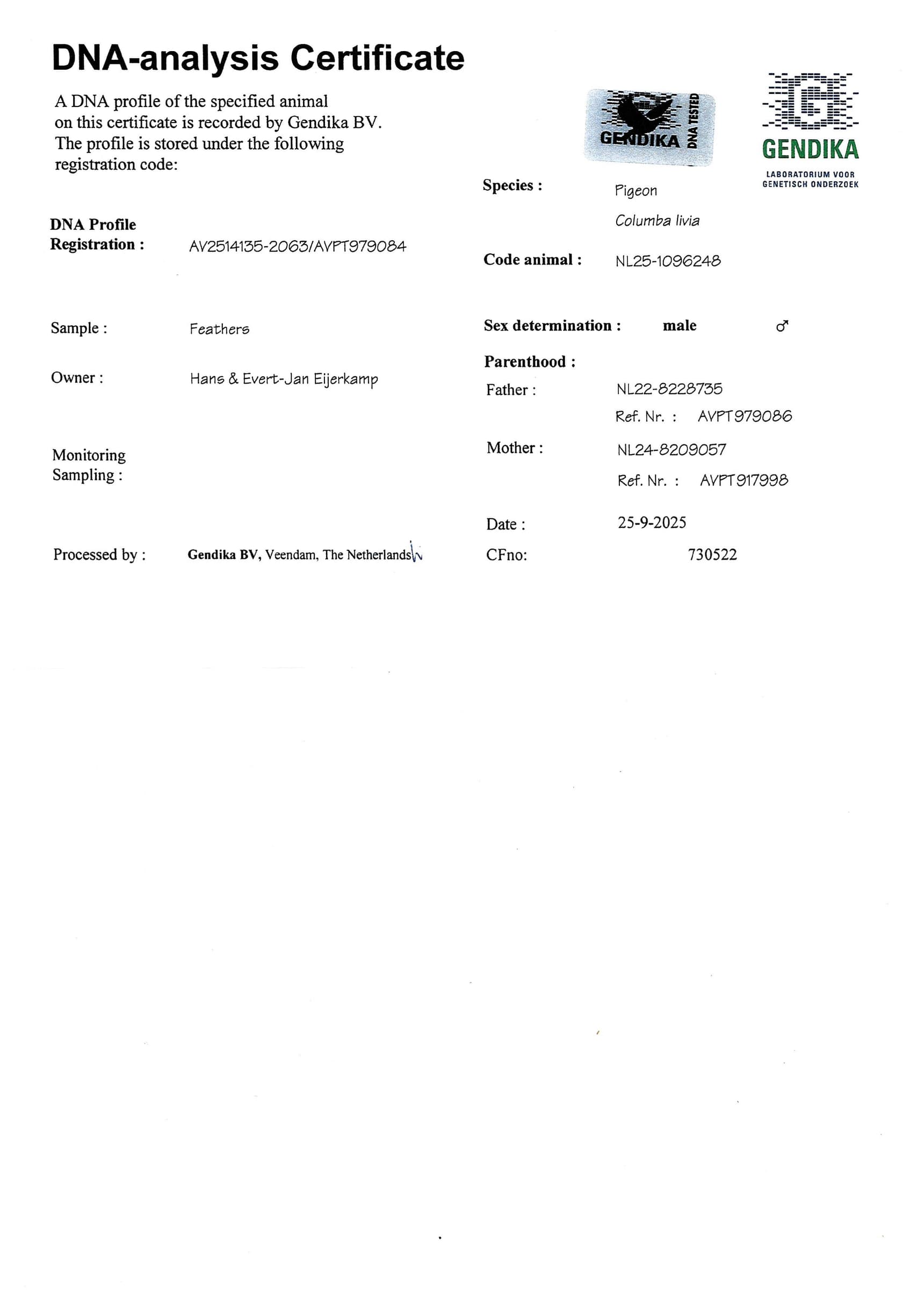 Breeder: EIJERKAMP HANS & EVERT-JAN 汉斯 & 艾佛特-杨·爱亚卡普