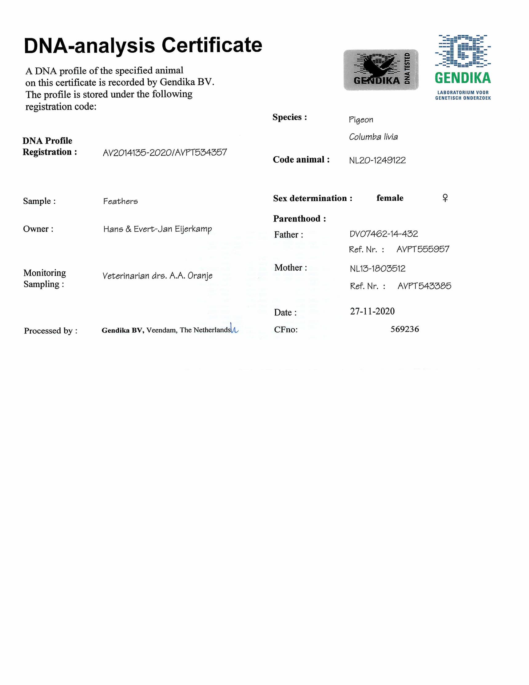 Breeder: EIJERKAMP HANS & EVERT-JAN 汉斯 & 艾佛特-杨·爱亚卡普
