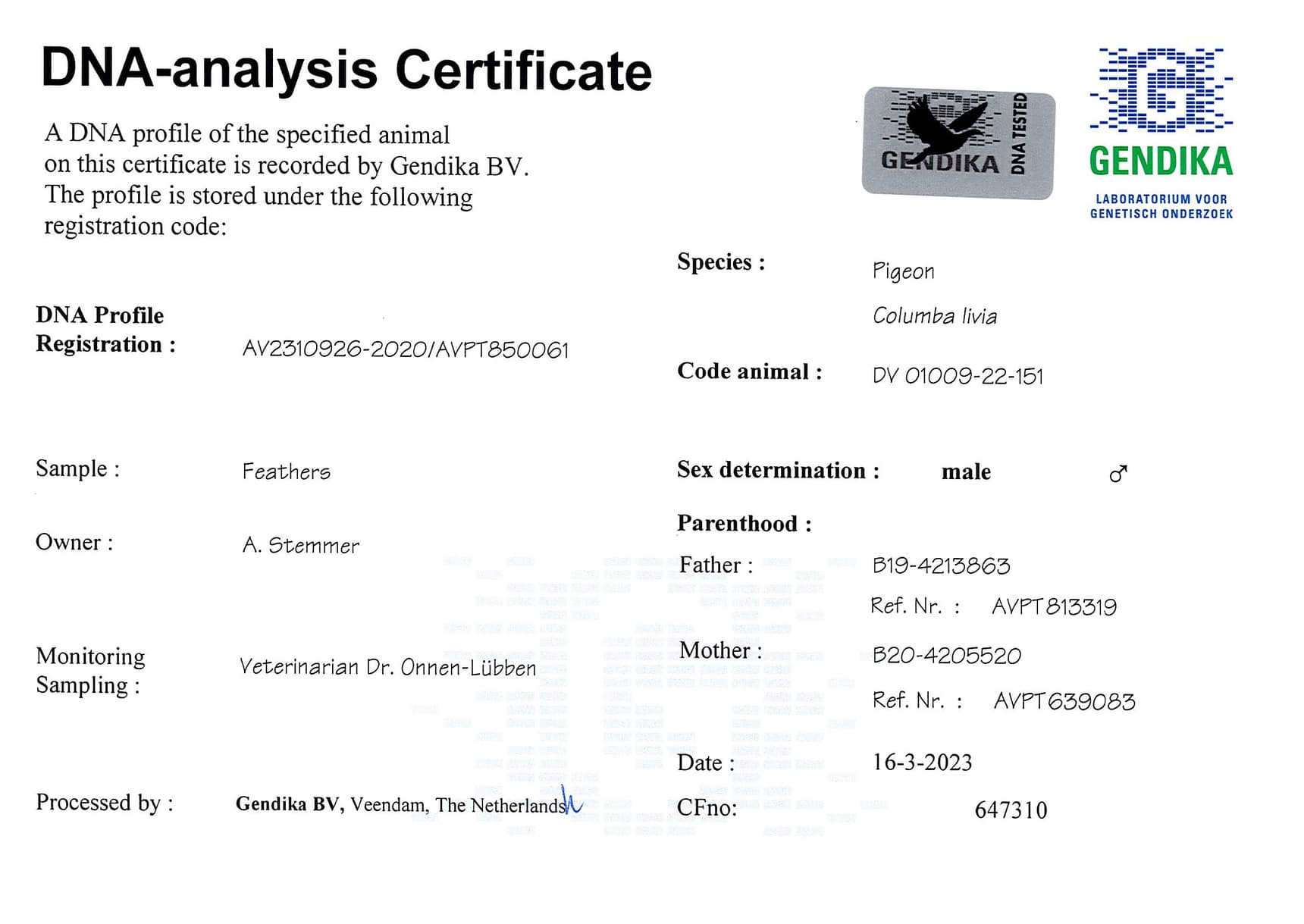 Is a full brother to “Kittel” (1st Nat. ace KBDB sprint) , “New Kittel” (6th Olympiad bird), “Witpen Kittel 702” (bred 3rd Nat. ace KBDB), “Angelina” (bred 15th Nat. ace KBDB), “Gold Dust” (bred 3rd Nat. ace NPO), “Golden Kittel” (bred 16th Nat. ace KBDB)