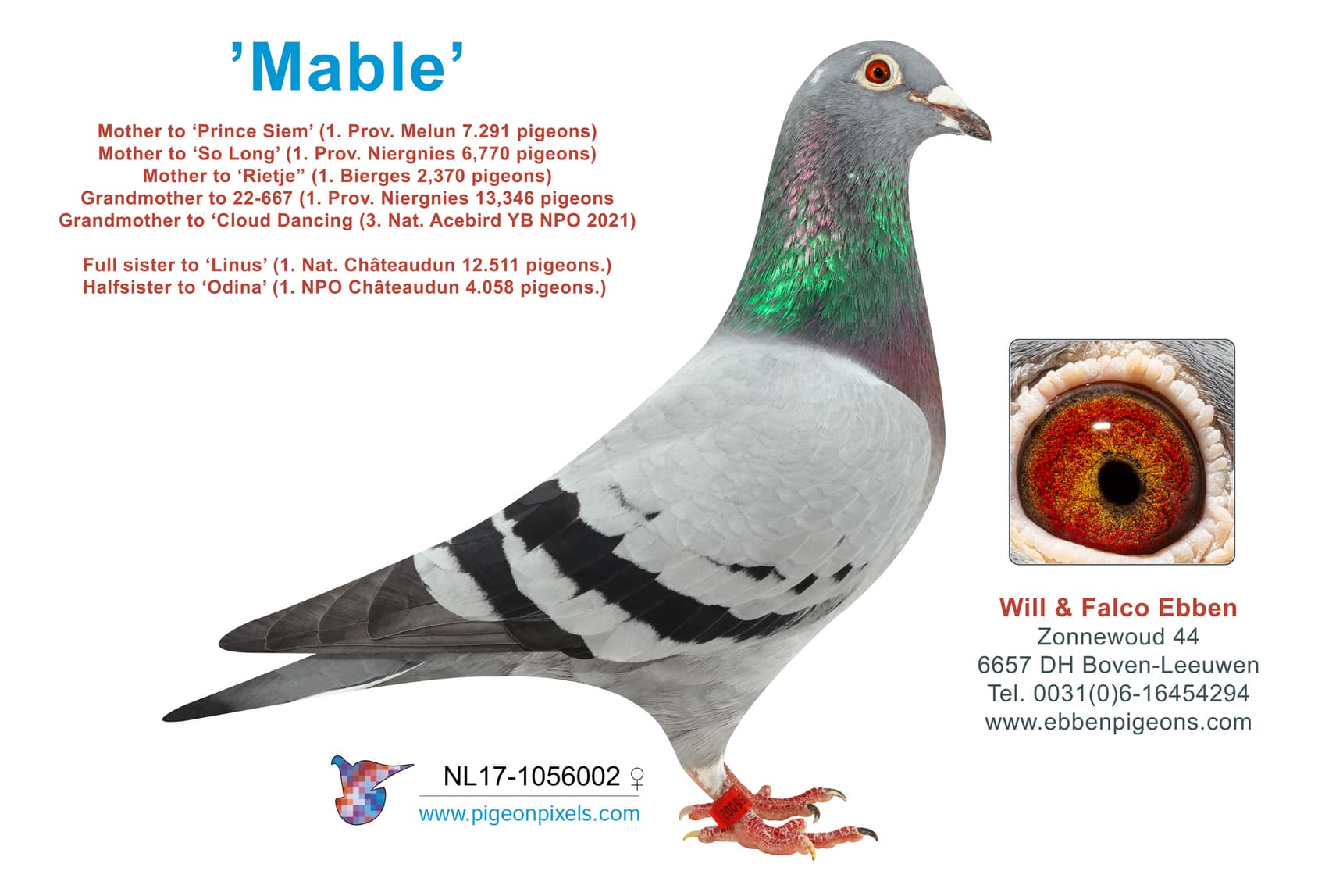 Born out “Odar” (Verkerk) x “Mable” (sister “Linus”)