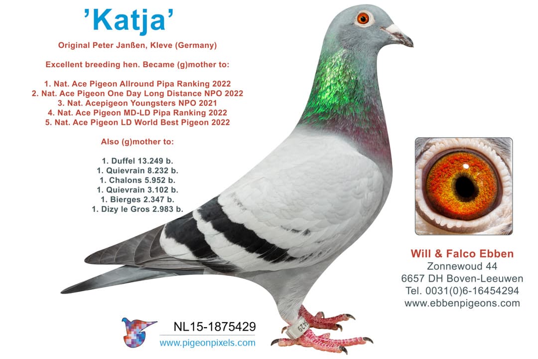 Born out “Linus” x “Katja”, so a full sister to champion birds “Pizza”, “Pandemic”, “Tornado” and “Tsunami”