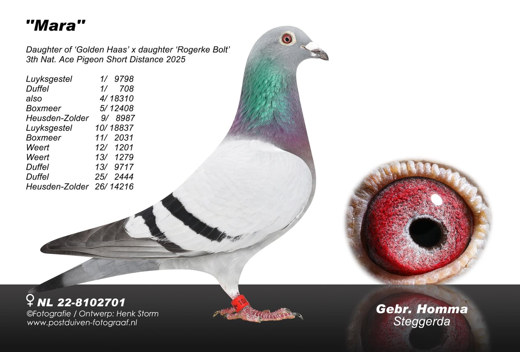 “Rienke” 9th Nat. Ace Pigeon FCI World Best Pigeon The Netherlands