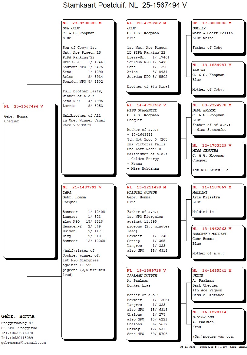 Granddaughter “Jelte” (Arnold Paalman) 4th Ace Pigeon Middle Distance