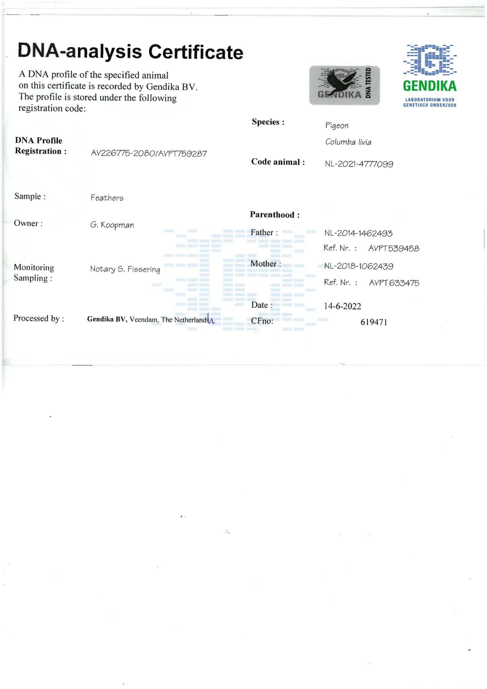 Breeder: KOOPMAN GERARD 吉拉德·考夫曼