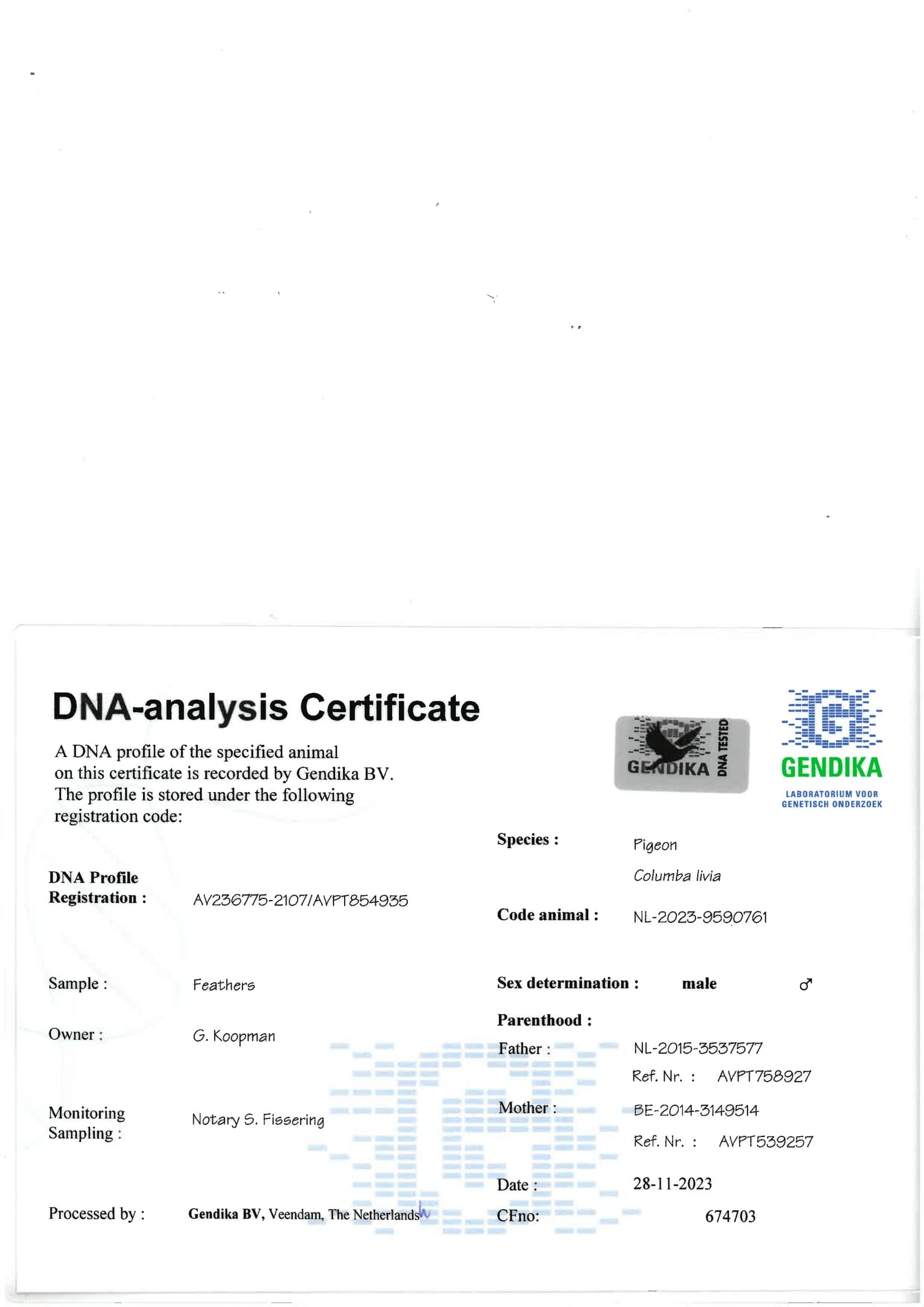 Father: “Walter” NL15-3537577 – original P.W.A. v/d Meulen