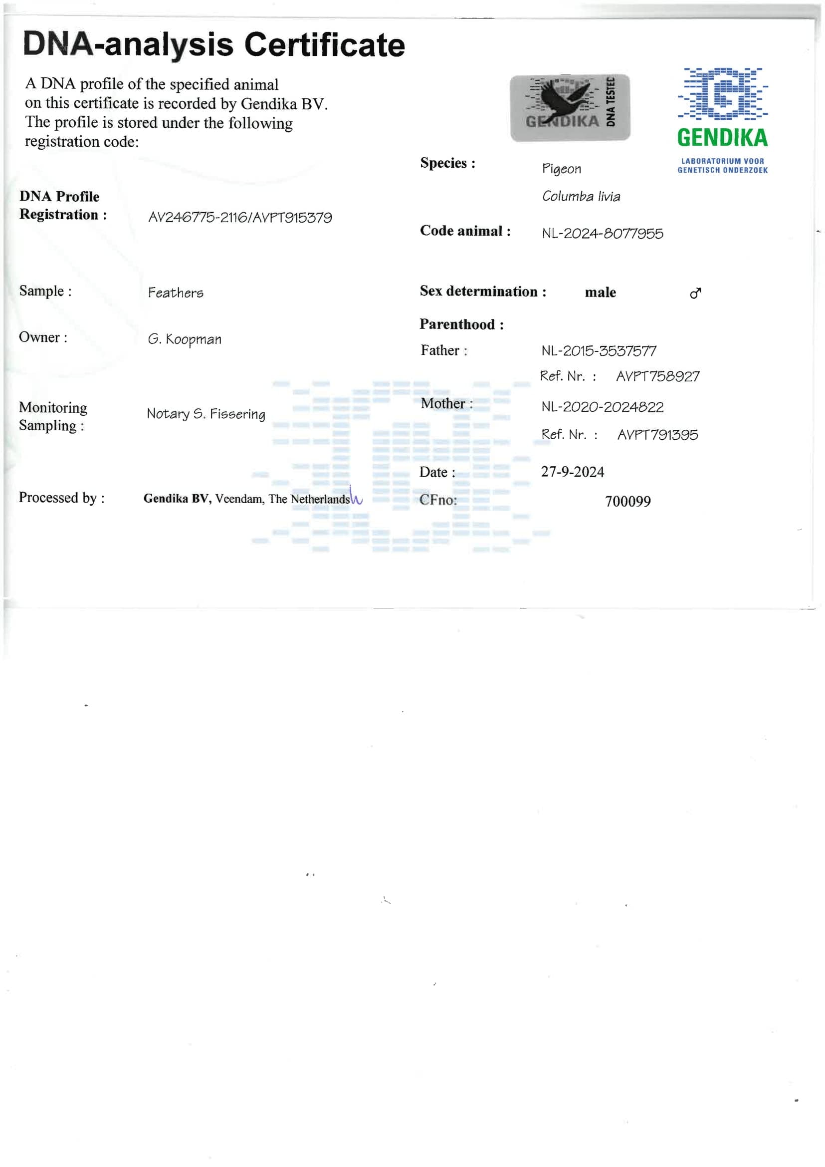 Breeder: KOOPMAN GERARD 吉拉德·考夫曼