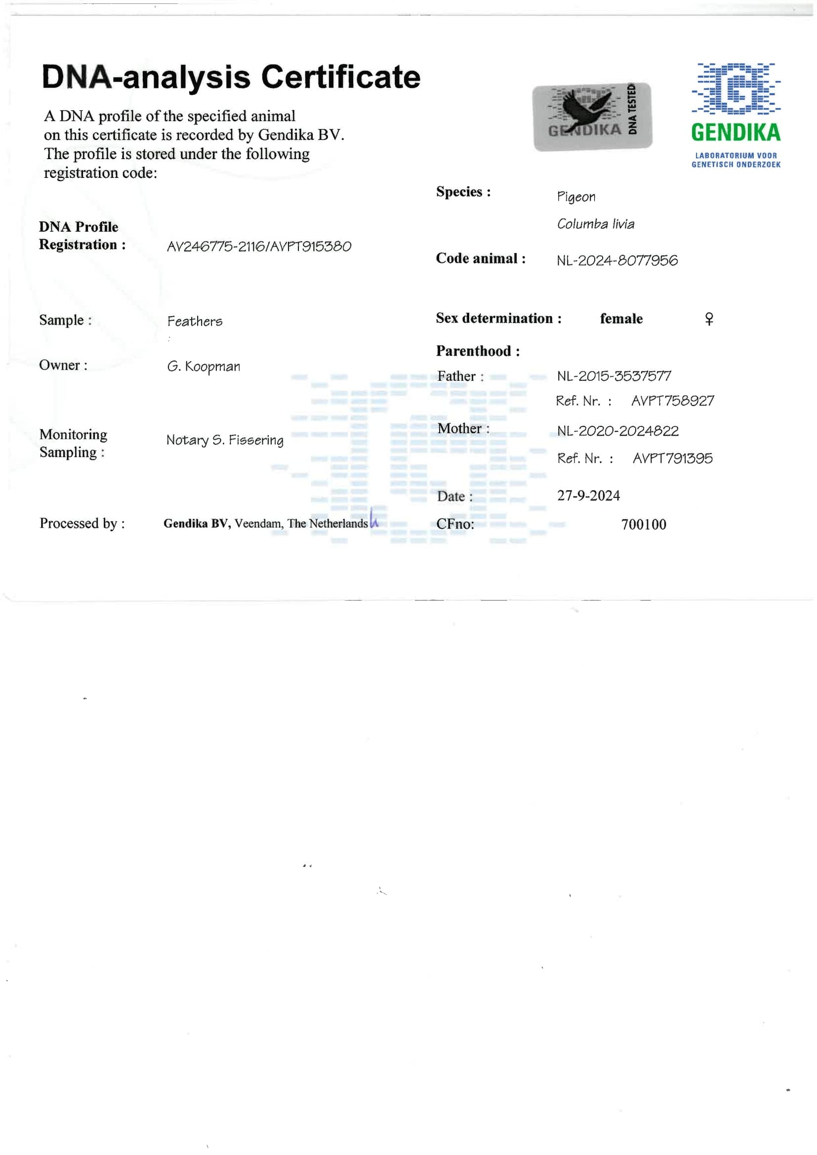 Father: “Walter” NL15-3537577 – original P.W.A. v/d Meulen