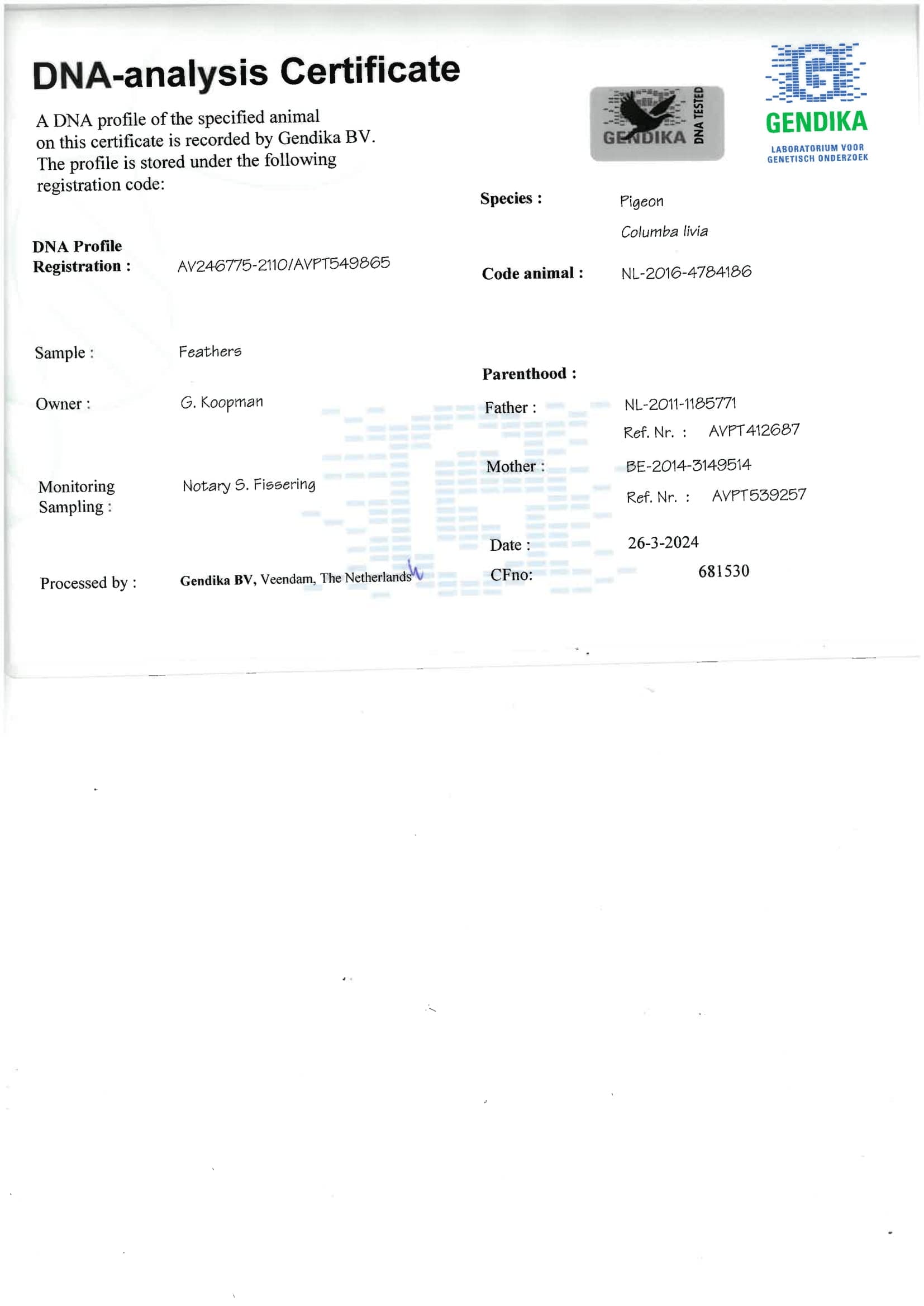 Breeder: KOOPMAN GERARD 吉拉德·考夫曼