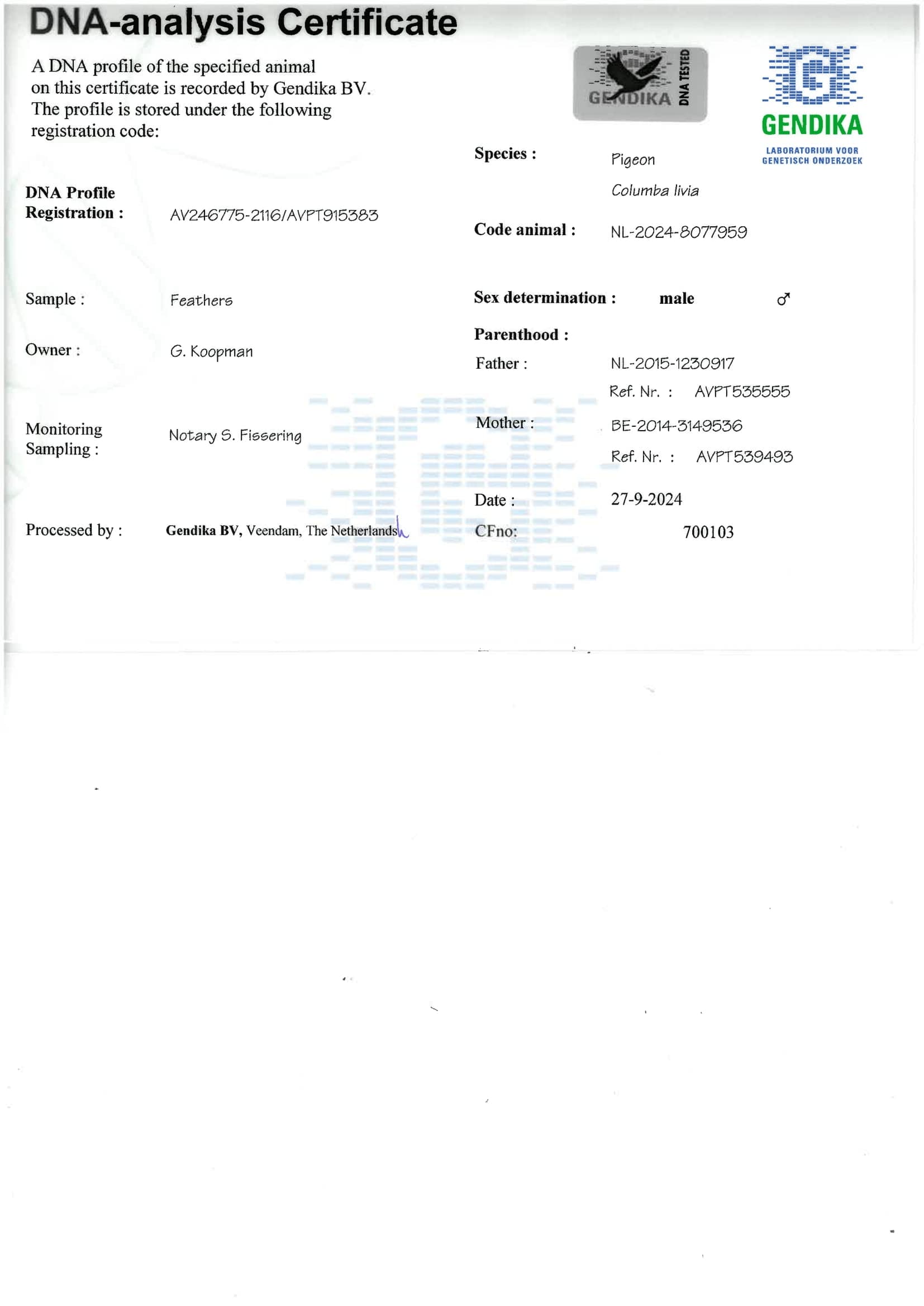 Breeder: KOOPMAN GERARD 吉拉德·考夫曼