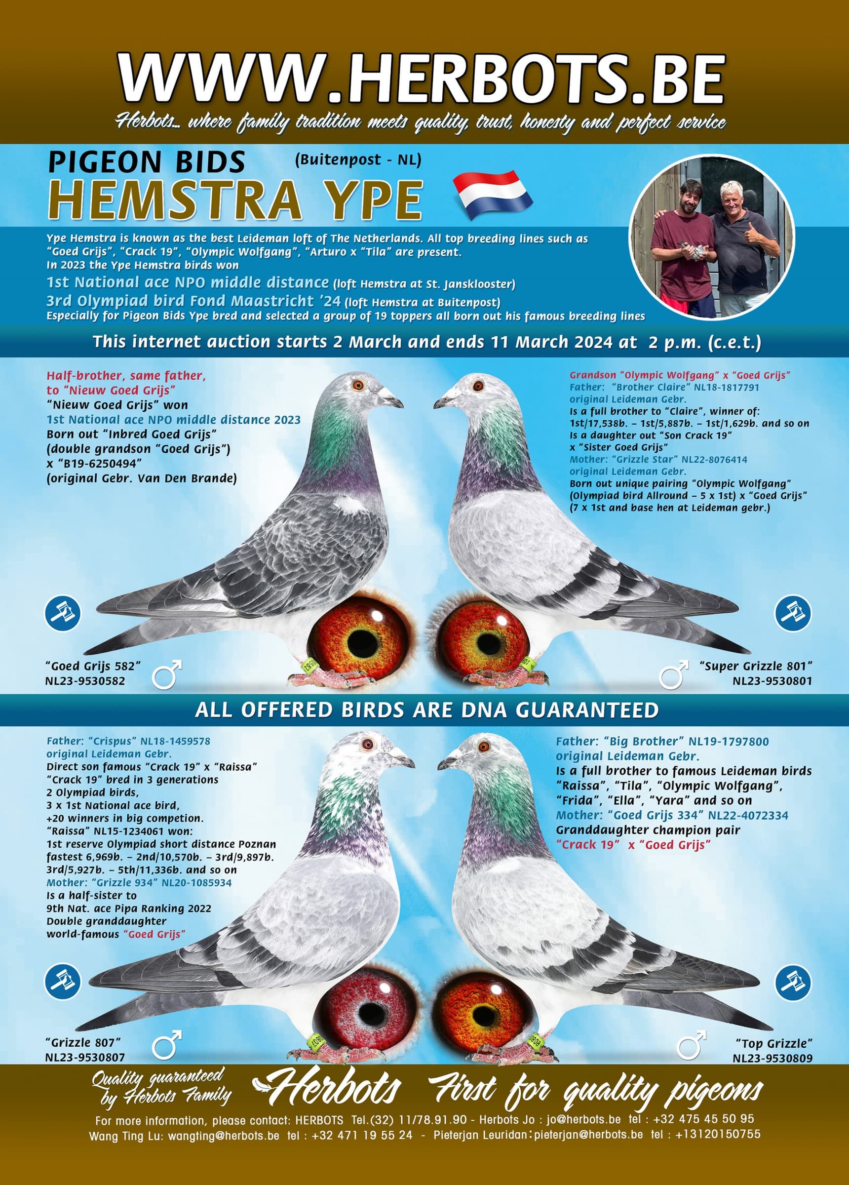 pigeon bids hemstra ype - the best leideman gebroeders loft world-wide