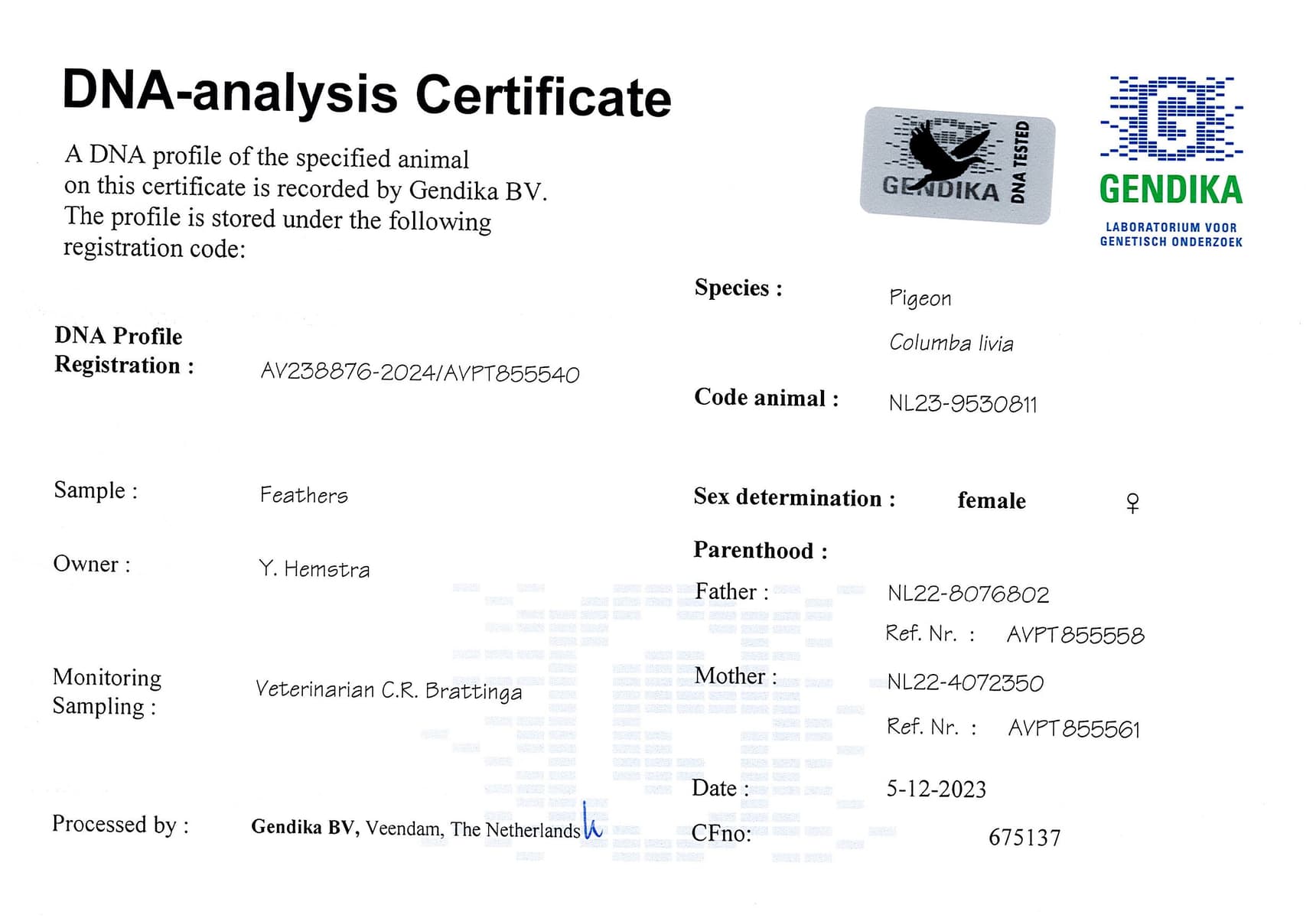 Breeder: HEMSTRA YPE 伊普·赫米斯特拉