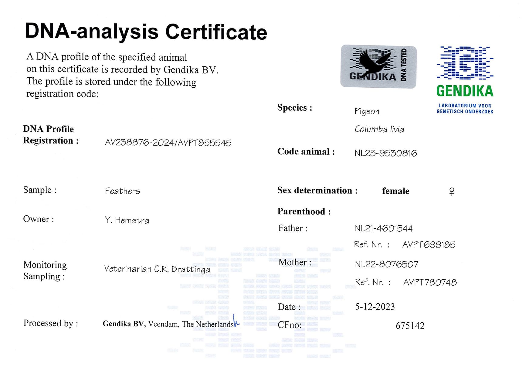 Breeder: HEMSTRA YPE 伊普·赫米斯特拉