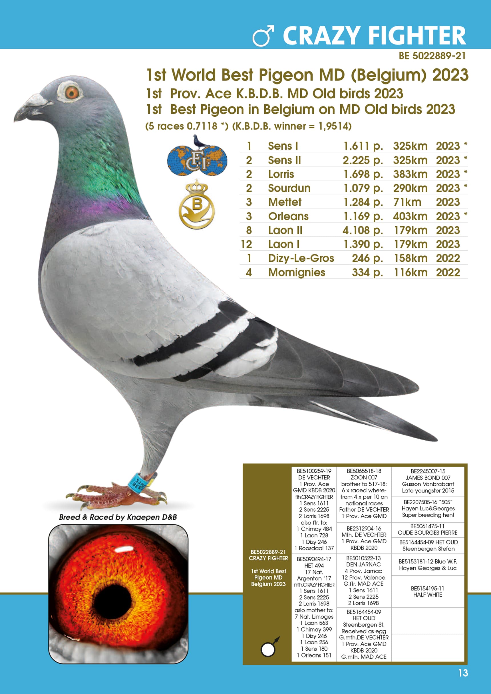 1st Best Pigeon in Belgium on MD Old birds 2023 (5 races 0.7118 *)