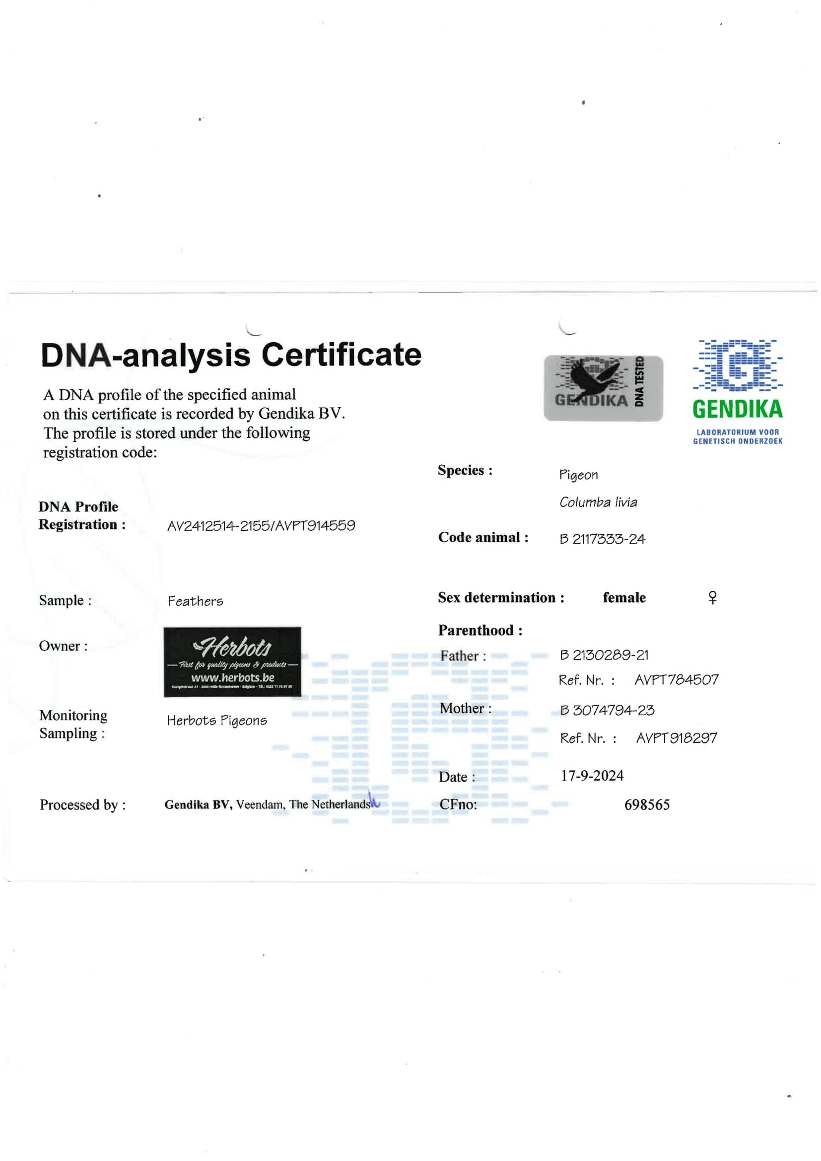 Breeder: HERBOTS GEBR. 贺伯特兄弟