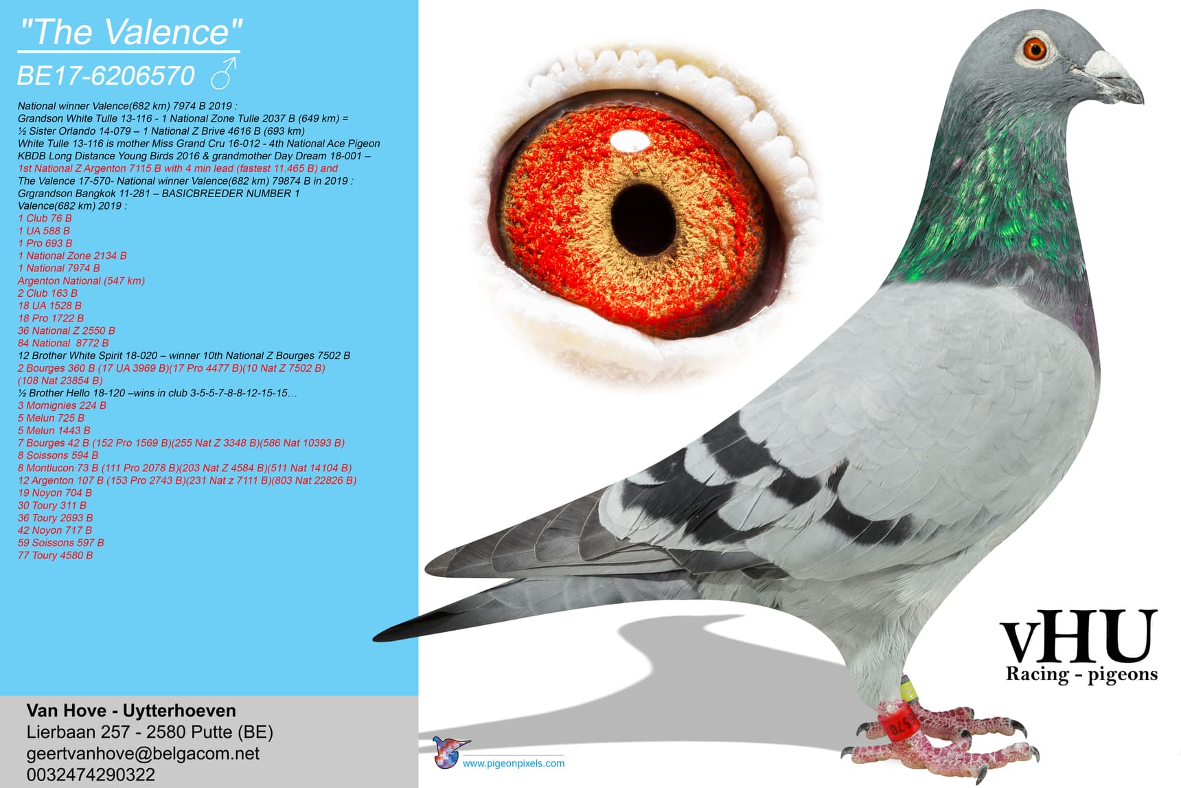 Direct daughter “Royal Pattaya” (Full brother to "Da Ya Na", winner of Best bird of Belgium on 2 Fond races ’16 – 1st Momignies 790b. – 2nd Souppes 1,247b. – 5th Souppes 1,176b. – 8th Nat. Tulle 6,101b. and so on ) x “Iron Force” (58th Nat. La Souterraine 16,665b. – 97th Nat. Guerret 12,592b. – and so on)