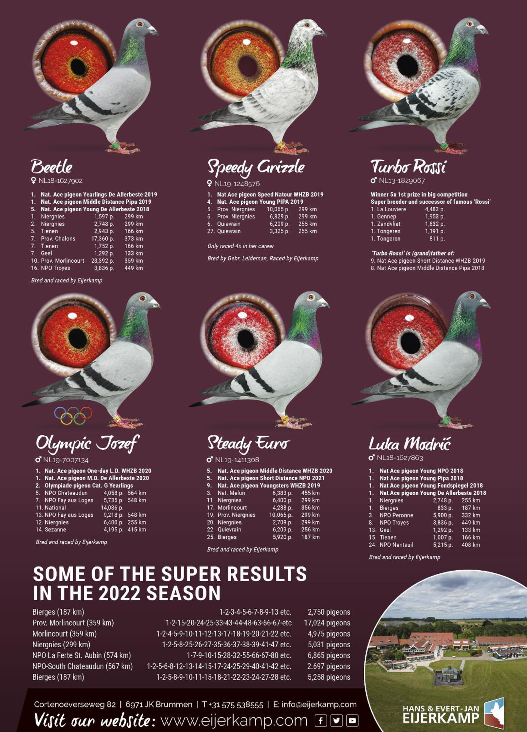 1st Neubrandenburg 6.184b. - 1st Quievrain 6.209b. - 1st Melun 2.179b. - 1st Tienen 2.006b. - 1st Quievrain 1.774b. - 1st Etrouengt 1.119b.