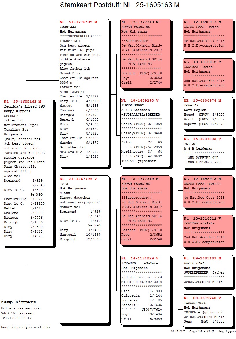 Mother to: 1st club Ace Pigeon Speed 100-500km