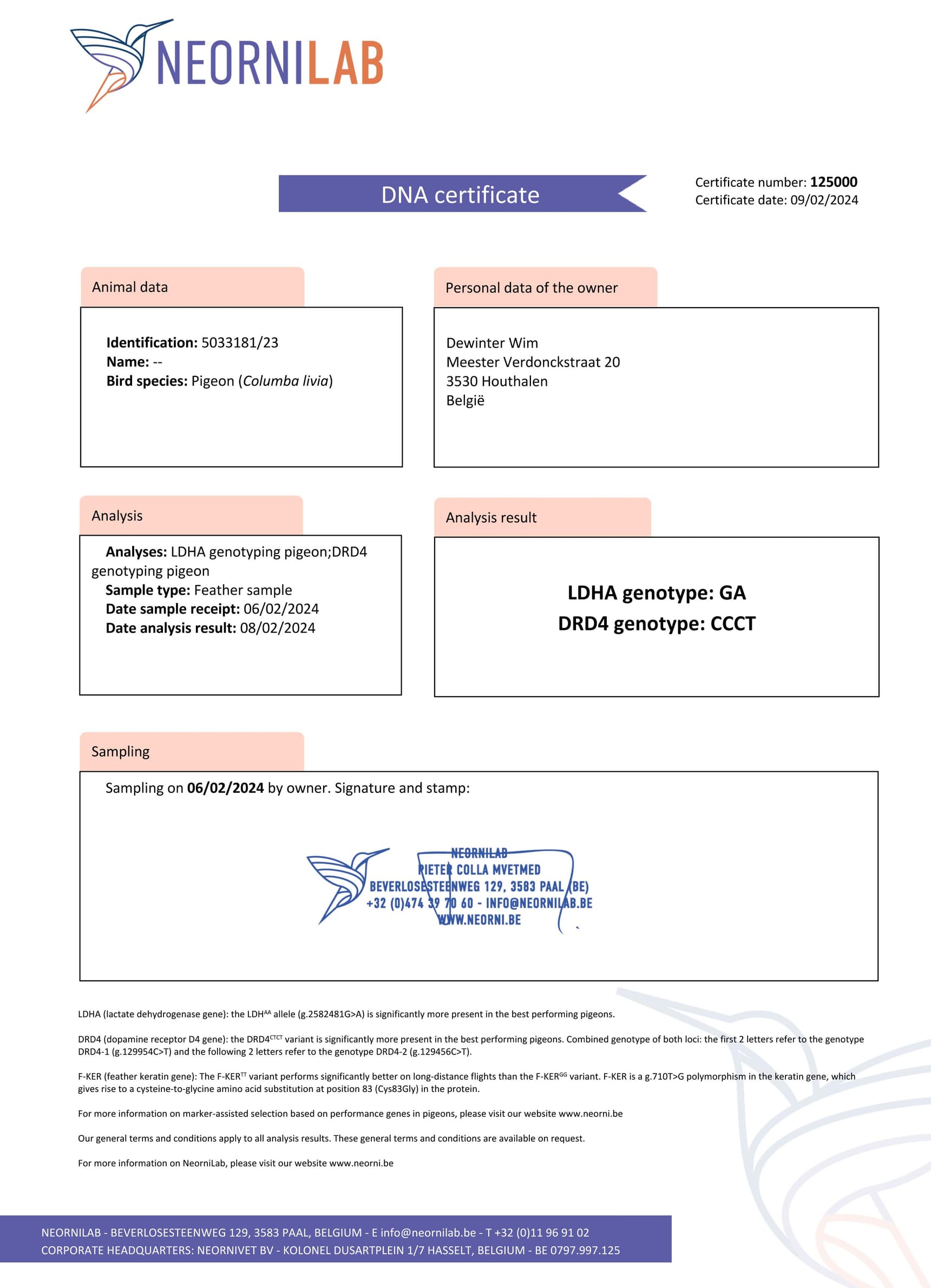 Born out “B20-4118395” (all info see above) x “B17-6024632” (granddaughter “Den Ad” – Wouters Marcel)