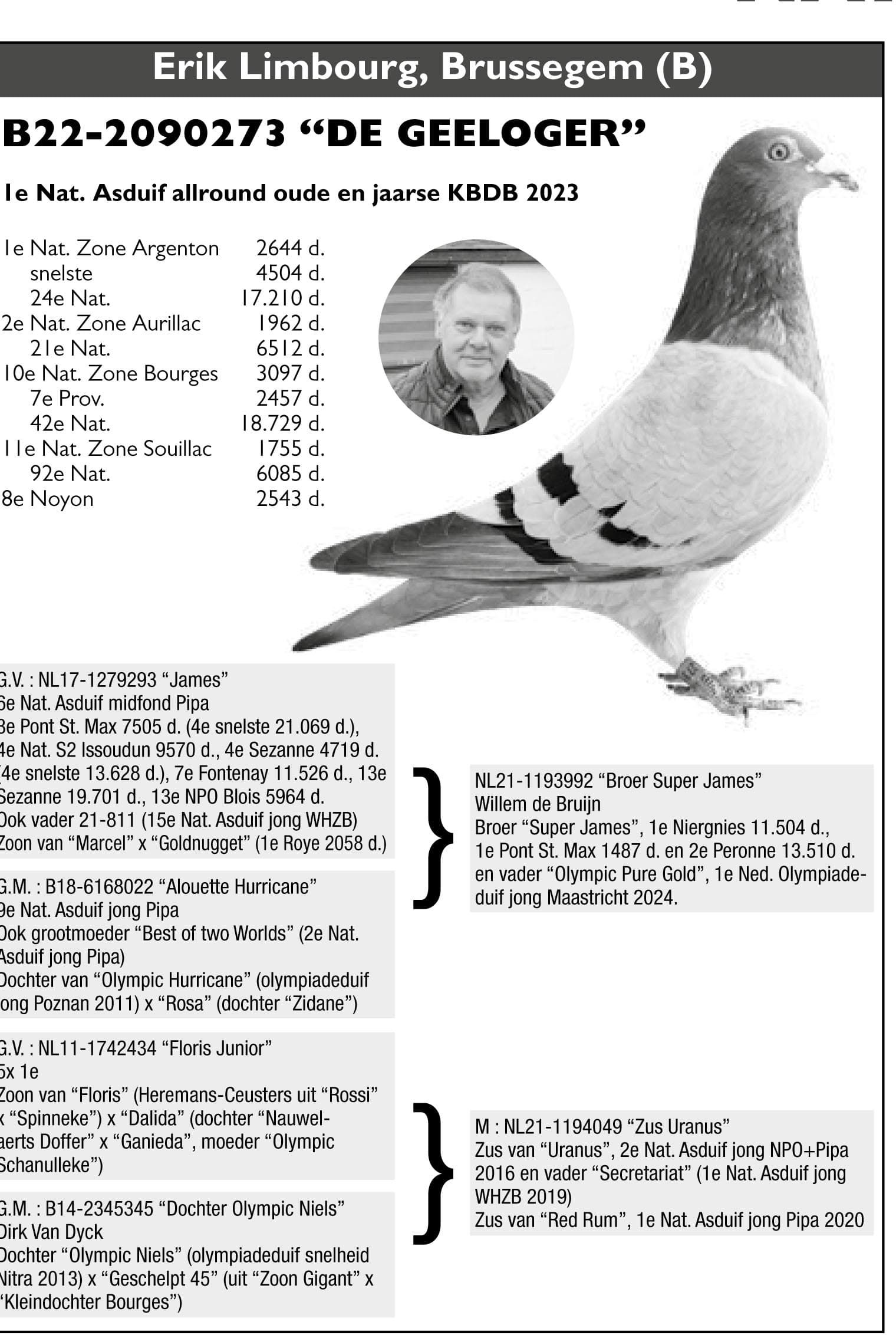 Is grandfather to: 2 x 1st Nat. ace youngbirds ’22