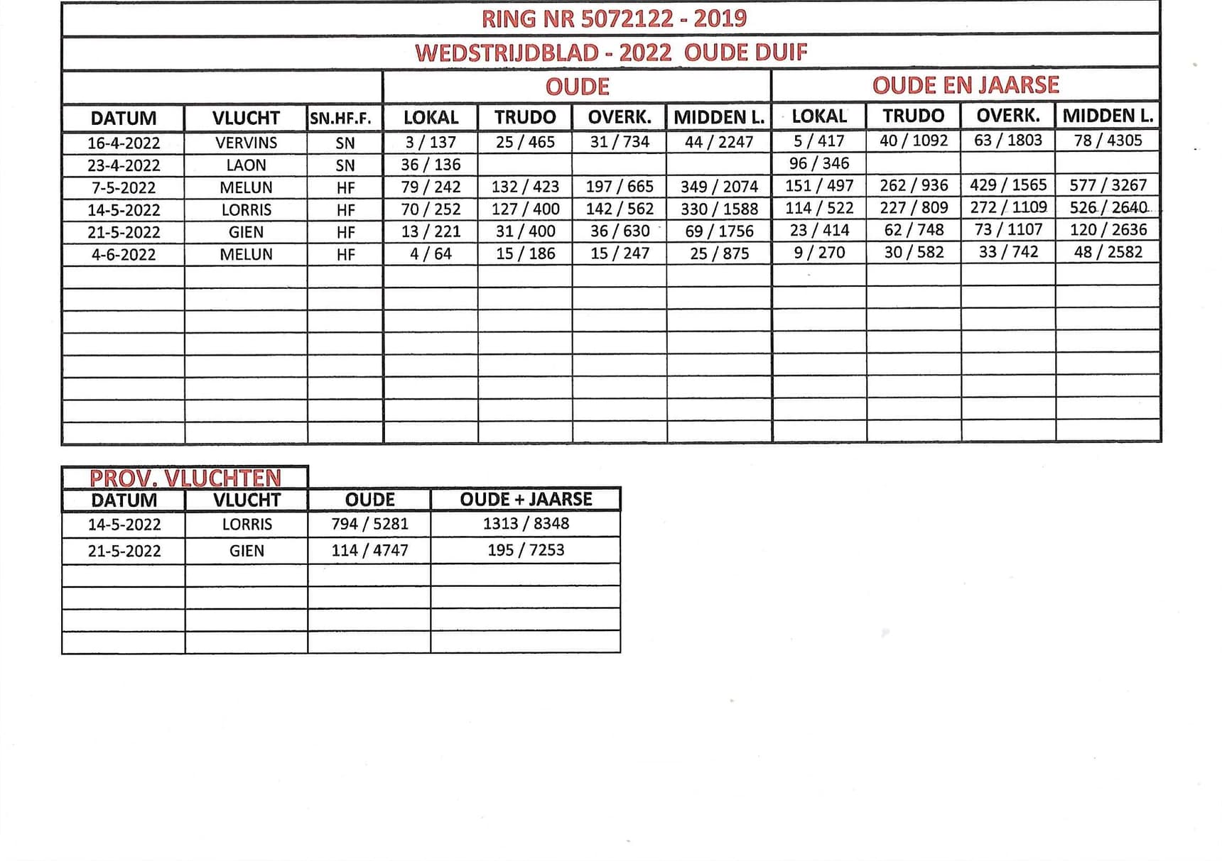 Won: 1st and 2nd Prov. Gien – 51 prizes on 4 racing seasons - 9 x 1st prize