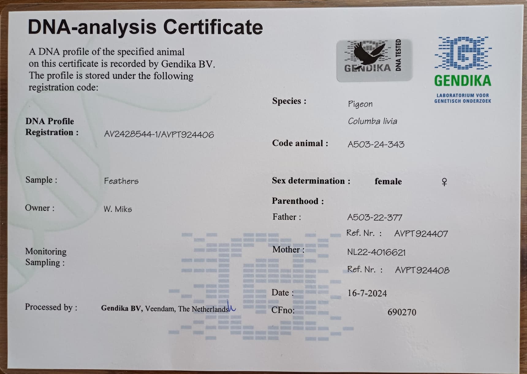Mother: “Djoeke” NL22-4016621 – original van Venrooij