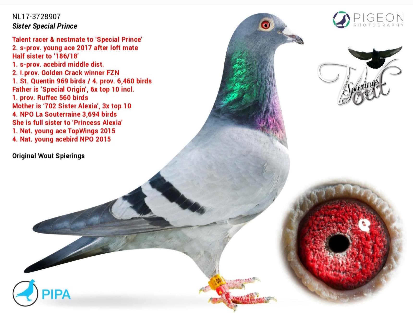 Is a full sister to “908-17”: 2nd S-Prov. ace bird ‘17