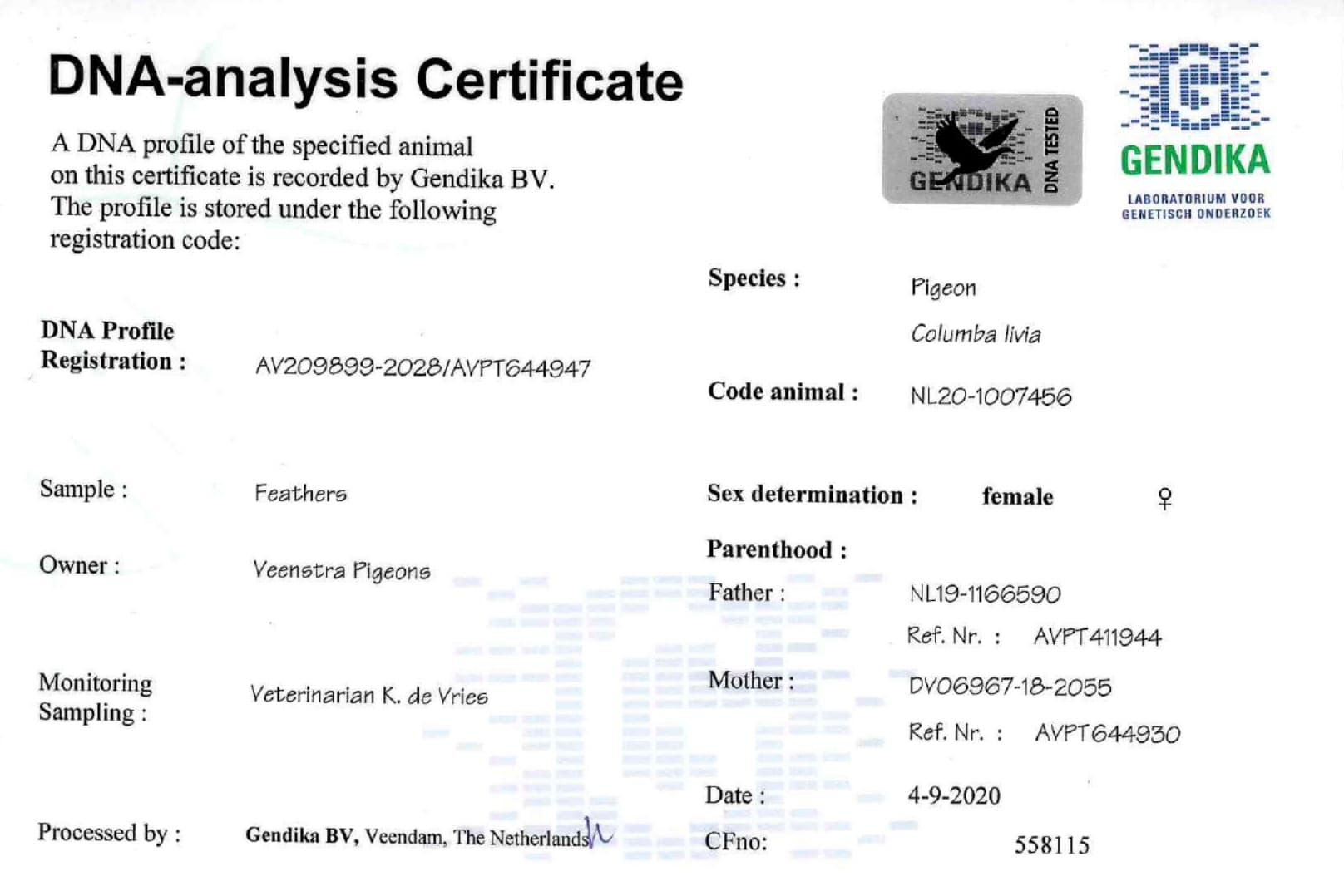 Breeder: VEENSTRA PIGEONS 文斯特拉鸽