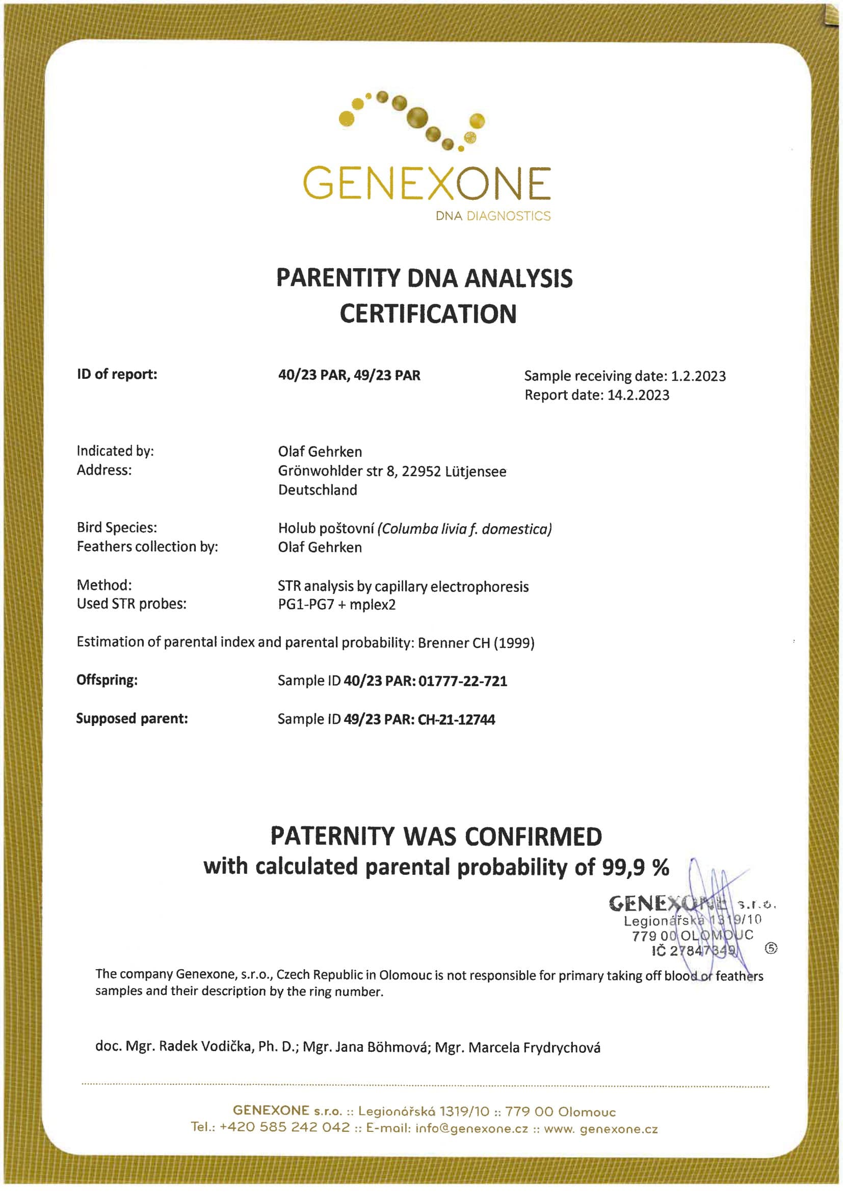Born out “Grandson Romario” x “Granddaughter Romario”