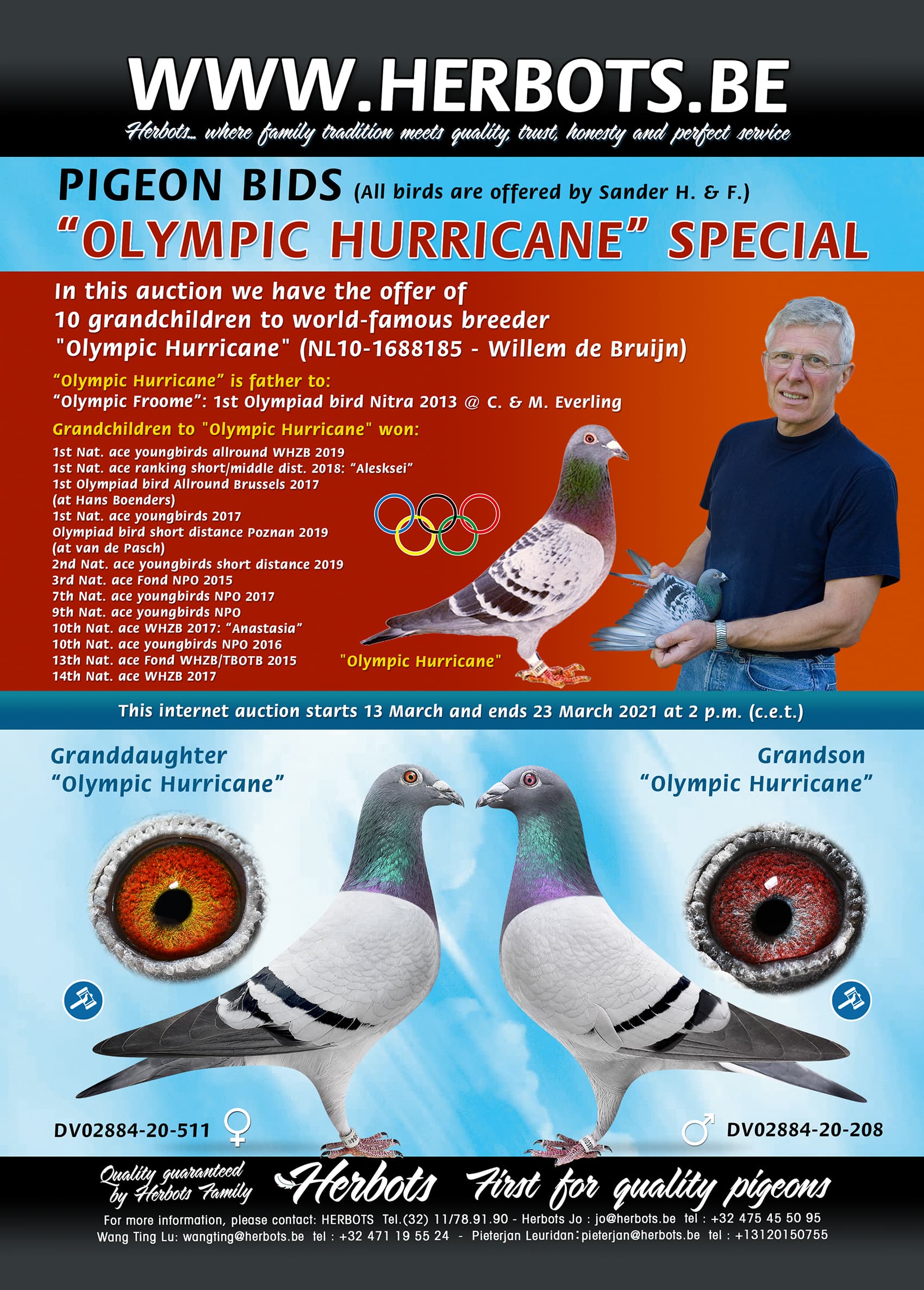 In this auction we have the offer of 10 grandchildren to world-famous breeder "Olympic Hurricane" (Willem de Bruijn)