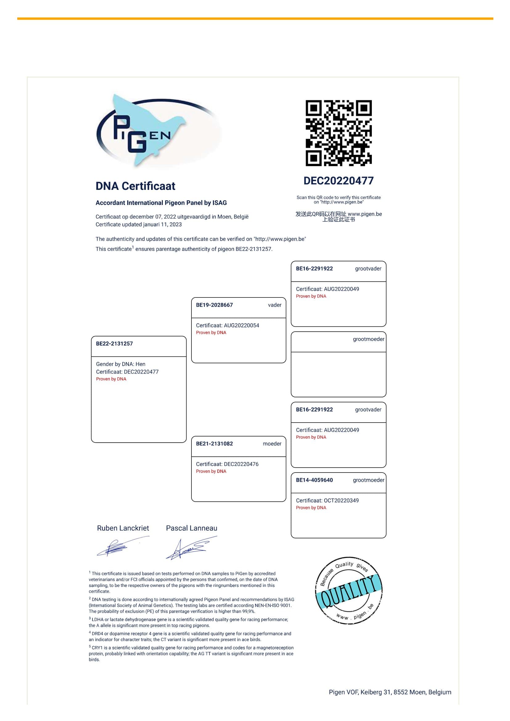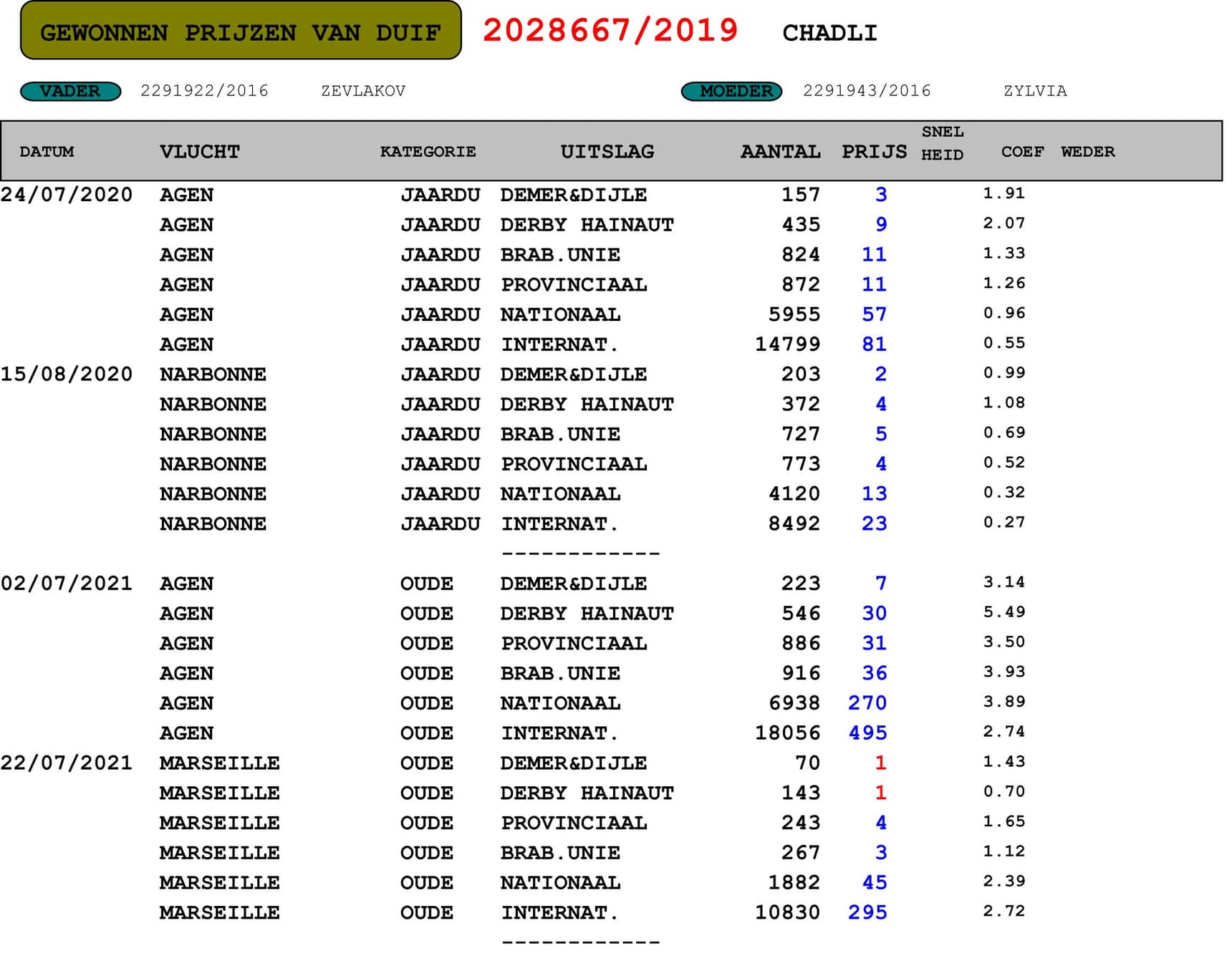Direct daughter 2nd World Best Belgian Pigeon Marathon ‘20 - 2nd Olympiad bird Marathon Romania