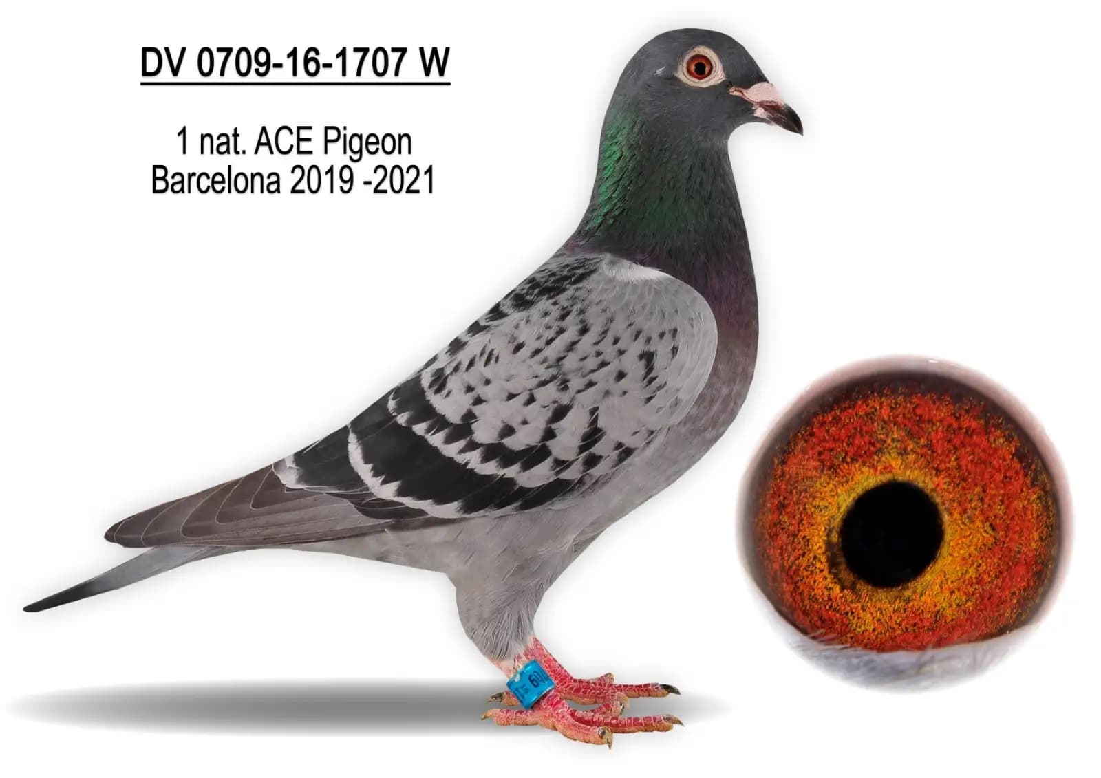 Direct daughter “Bold Barcelona” (4th Nat. Barcelona) x “Bella Barcelona”( direct daughter “Brother Rodico” (full brother to 1st Internat. Barcelona ’16 against 22,887b. at Van Tuyl) x “Barcelona Princess” (1st Nat. and 18th Internat. Barcelona ’08 – half-sister to 2nd Nat. and 14th Internat. Barcelona ‘04))