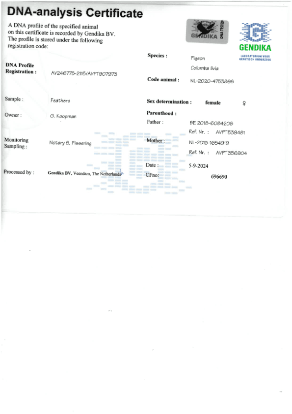 Out of the nest-sister “B18-6084207”, bred Gerard “Remzi”.