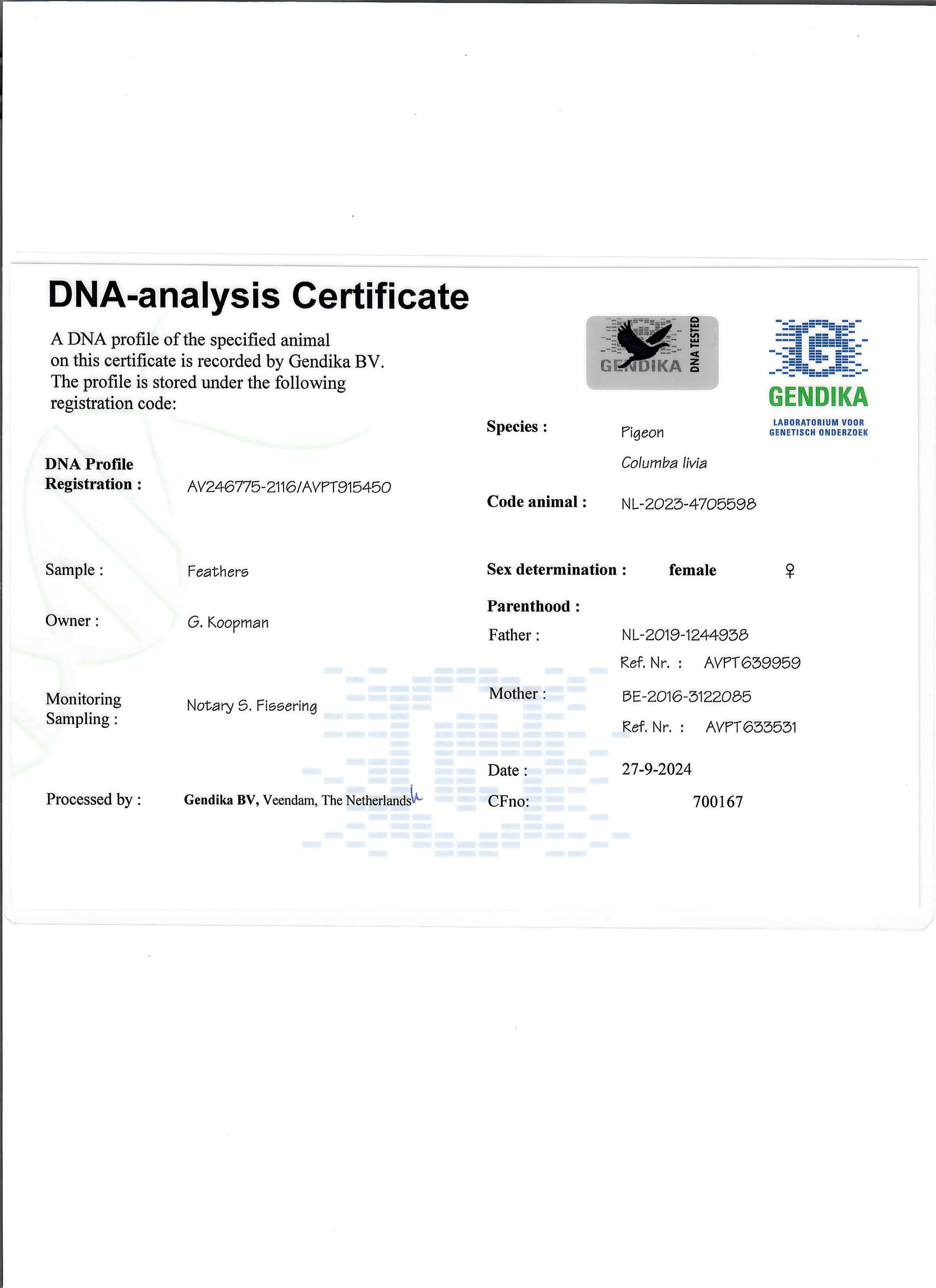 Breeder: KOOPMAN GERARD 吉拉德·考夫曼