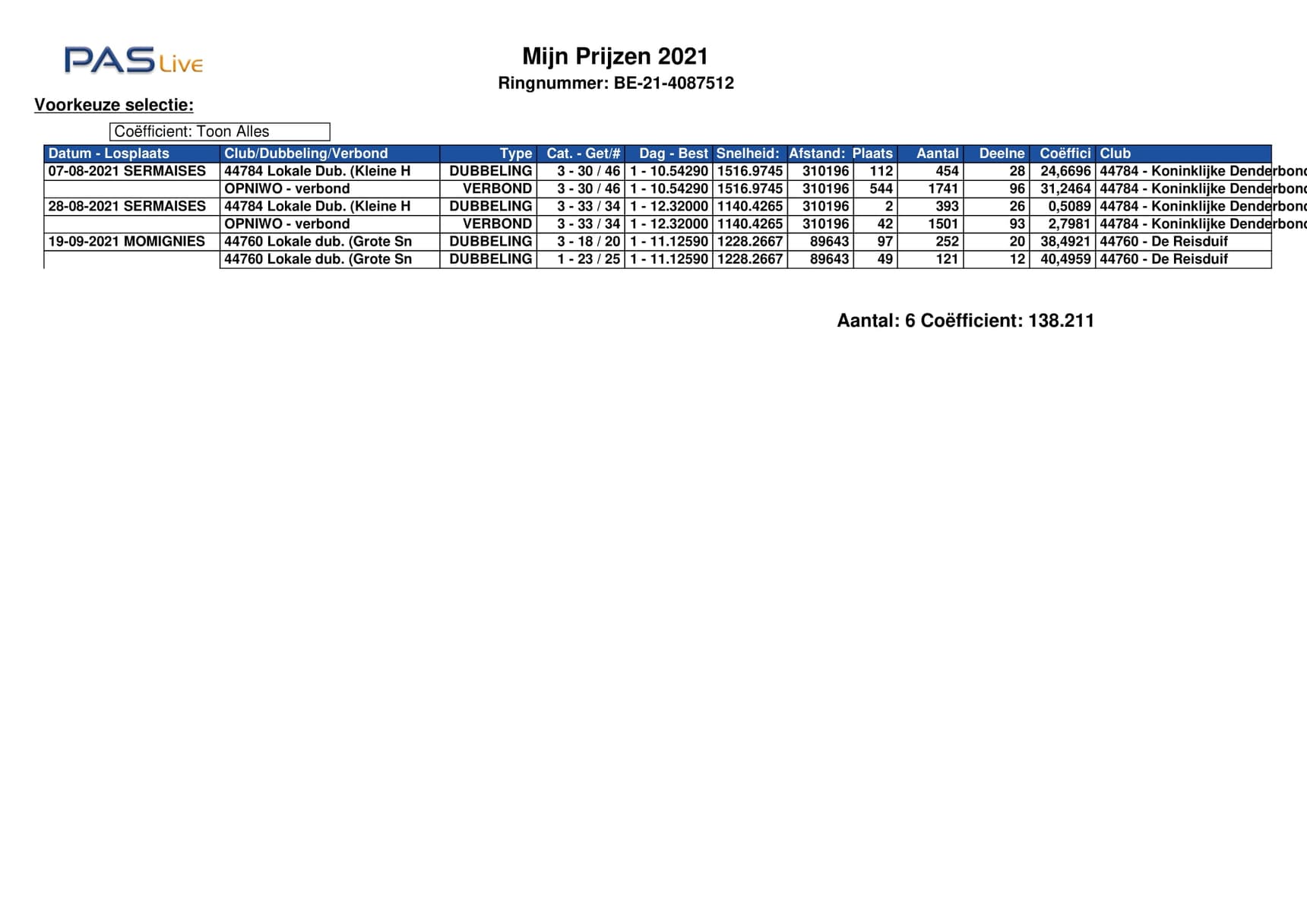 6th National ace KBDB (1st yearbird) allround old & yearbirds ‘22