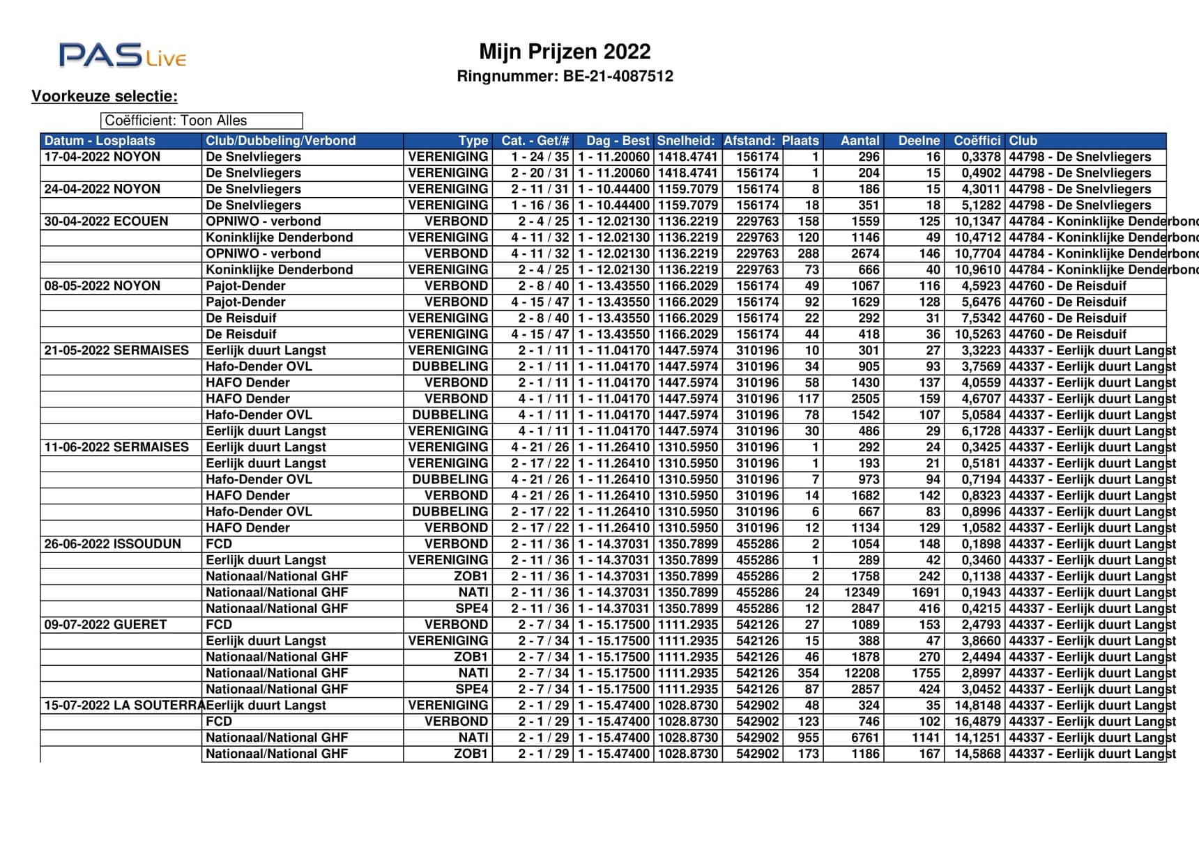 5th Nat. ace old birds on 8 national races great middle distance ’22 – Pipa Ranking