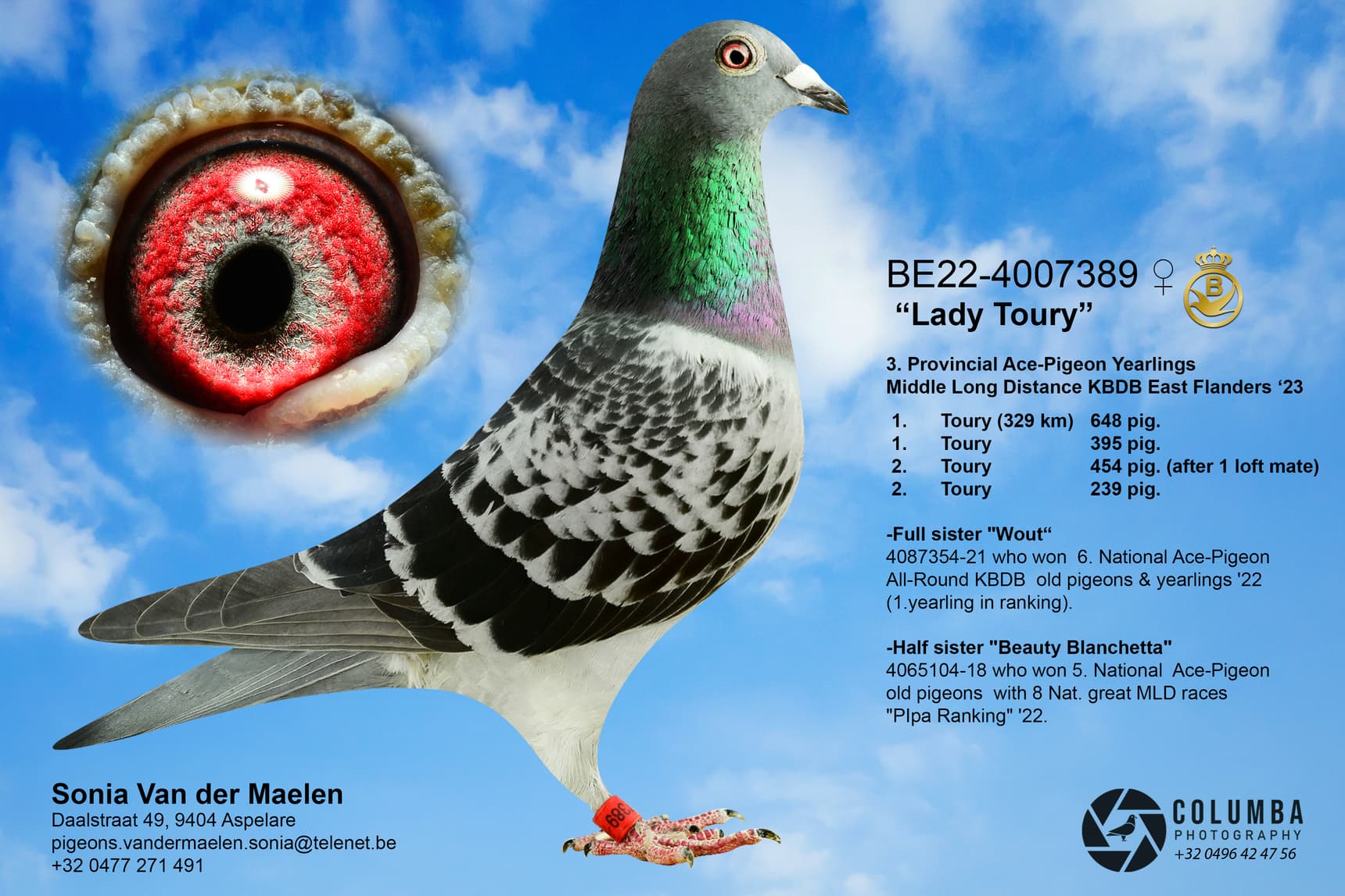 Born out “Brother Rune” (“Rune” won 1st Prov. La Souterraine 4,567b. – 1st Vierzon 217b. – 4th Argenton 545b. at Temmermans-Arijs) x “B12-4088344” (granddaughter 1st Prov. Limoges 4,707b. – 6th Nat. 17,456b.)