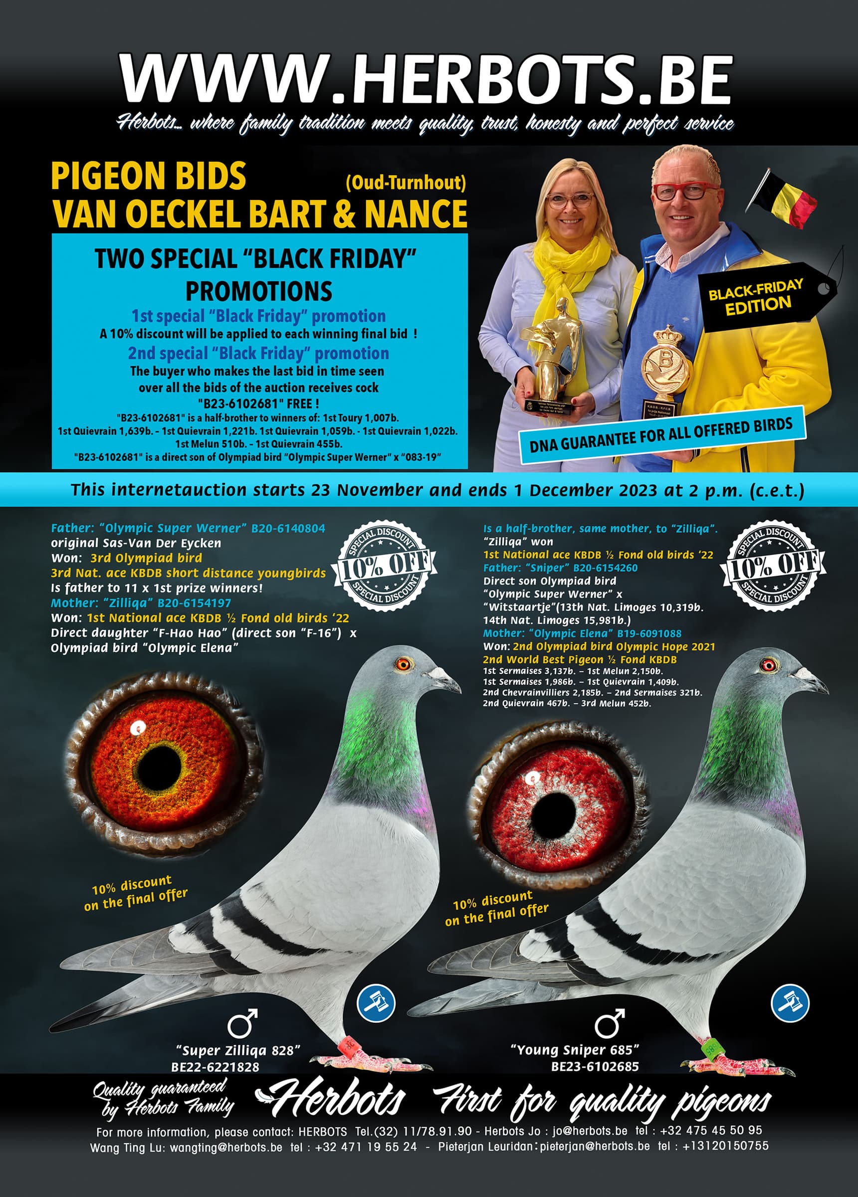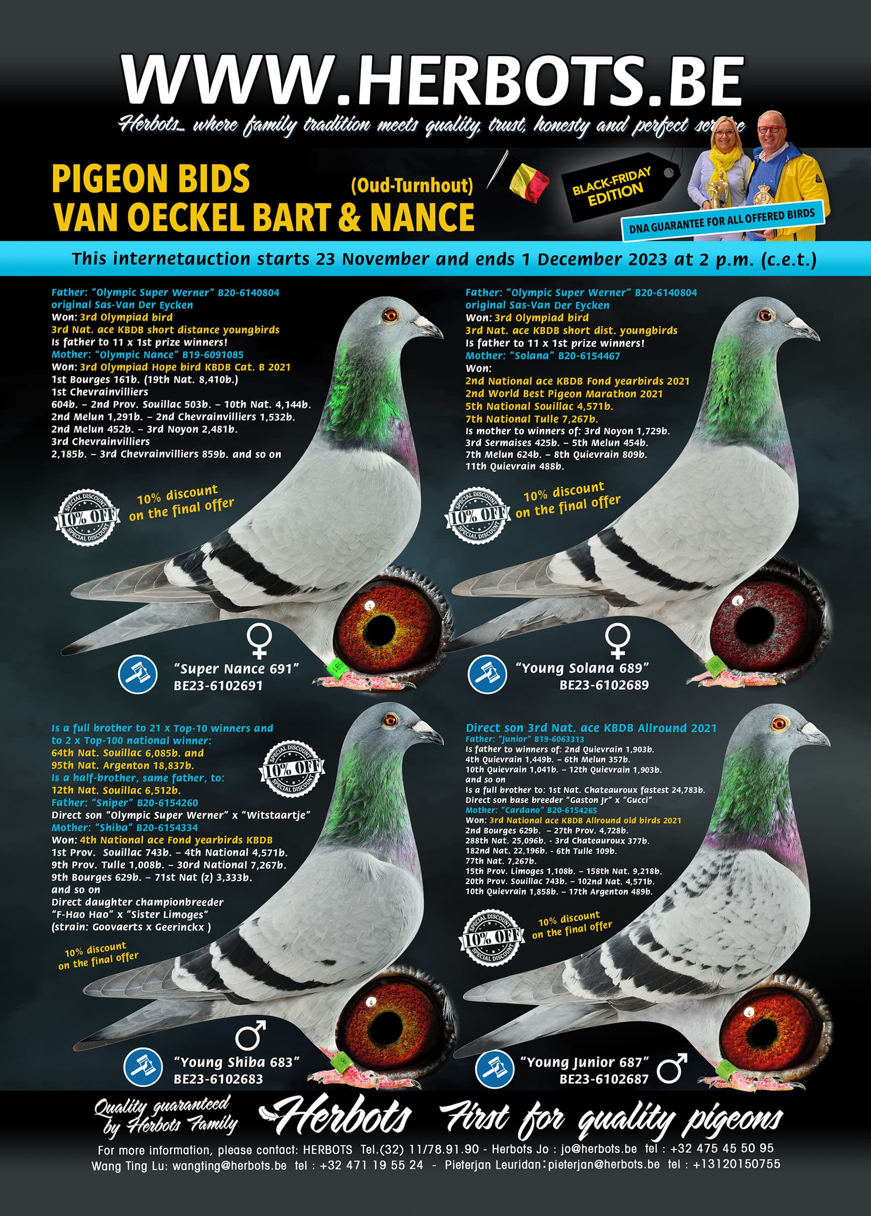 pigeon bids van oeckel b&n - "black friday" edition - 2023