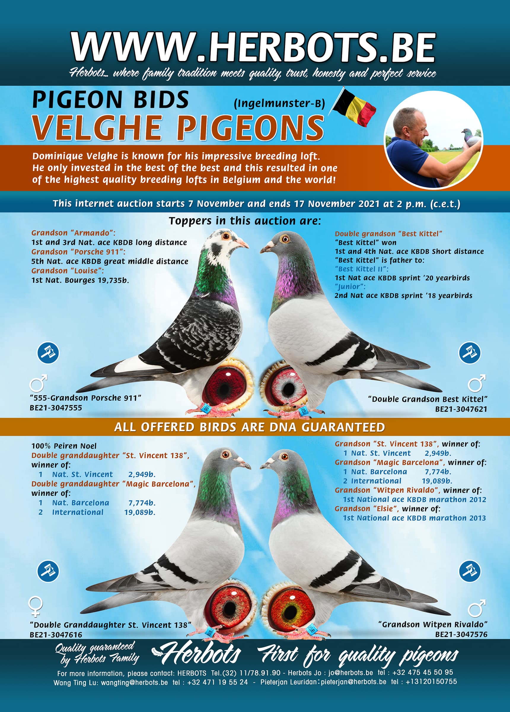 Pigeon Bids Velghe Pigeons - Nov 2021