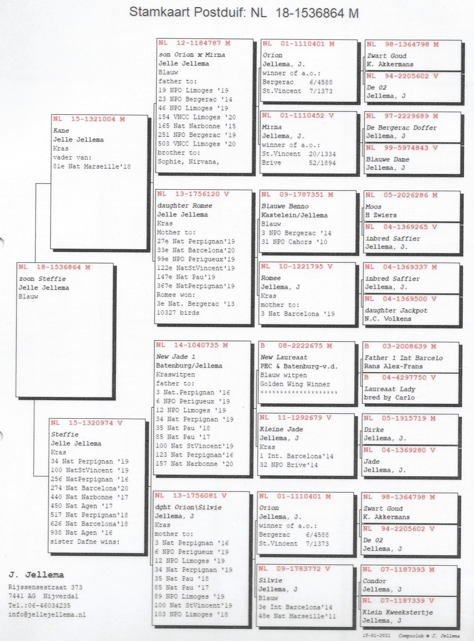Grandson “Orion” (6th Bergerac 4,588b.) and “Blauwe Benno” (3rd NPO Bergerac)