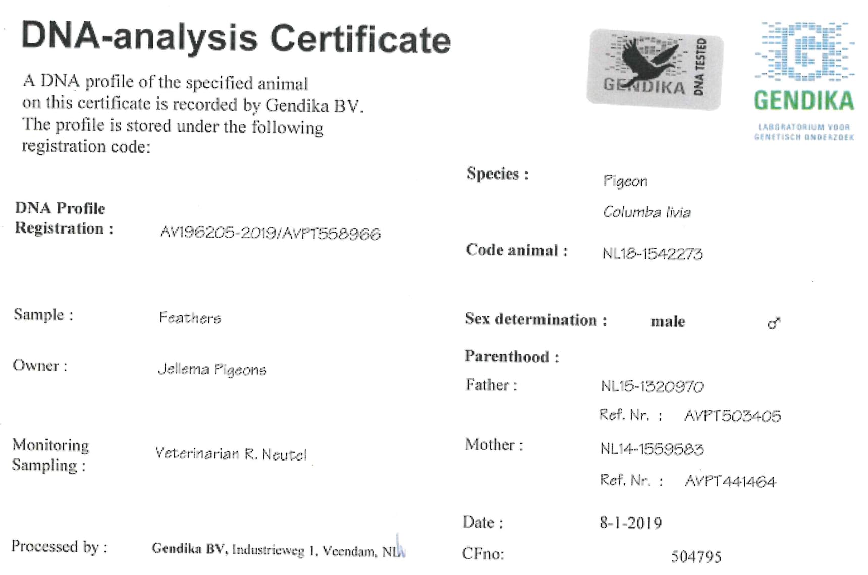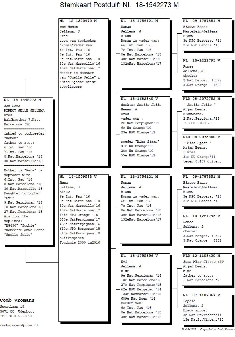 Direct daughter “Snelle Jelle” (won: 2nd Nat. Perpignan 5,600b. – 6th Orange 4,023b. – and so on) x “Miss Sjaan” (won: 31st Orange ’11- 8,457b. –