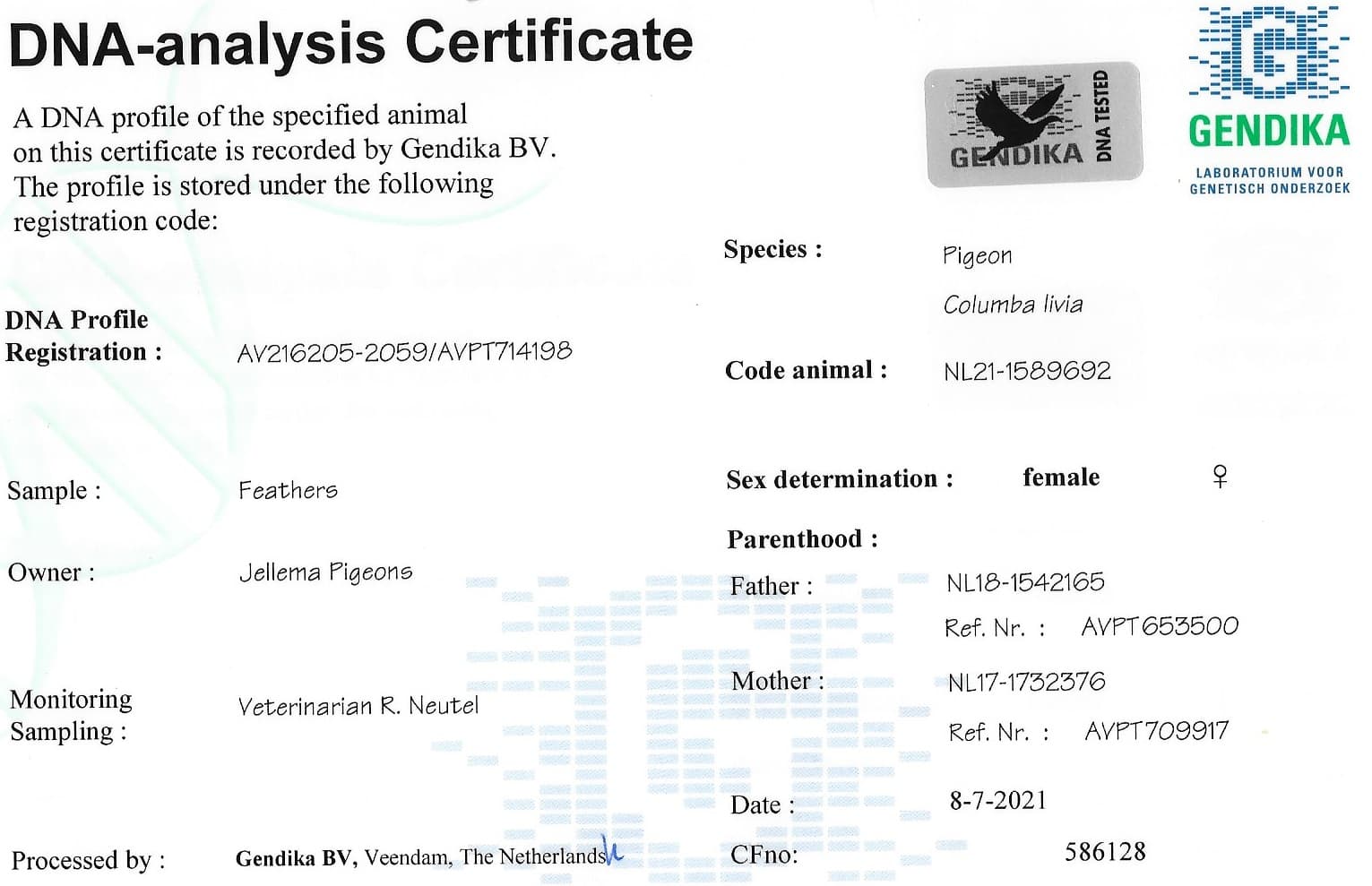 Direct son “Son Miss Gijsje 430” (NL12-1108430) x “New Jade 7” (daughter 1st Internat. Barcelona “New Laureaat” x 1st Internat. Barcelona “Kleine Jade”)