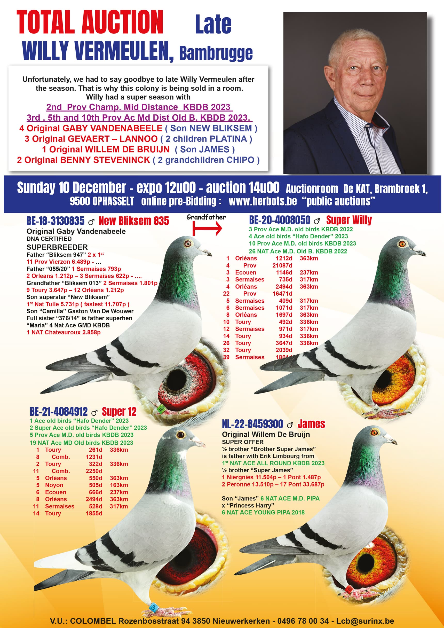 This auction is presented on www.herbots.be section Pigeon Bids / Public auctions