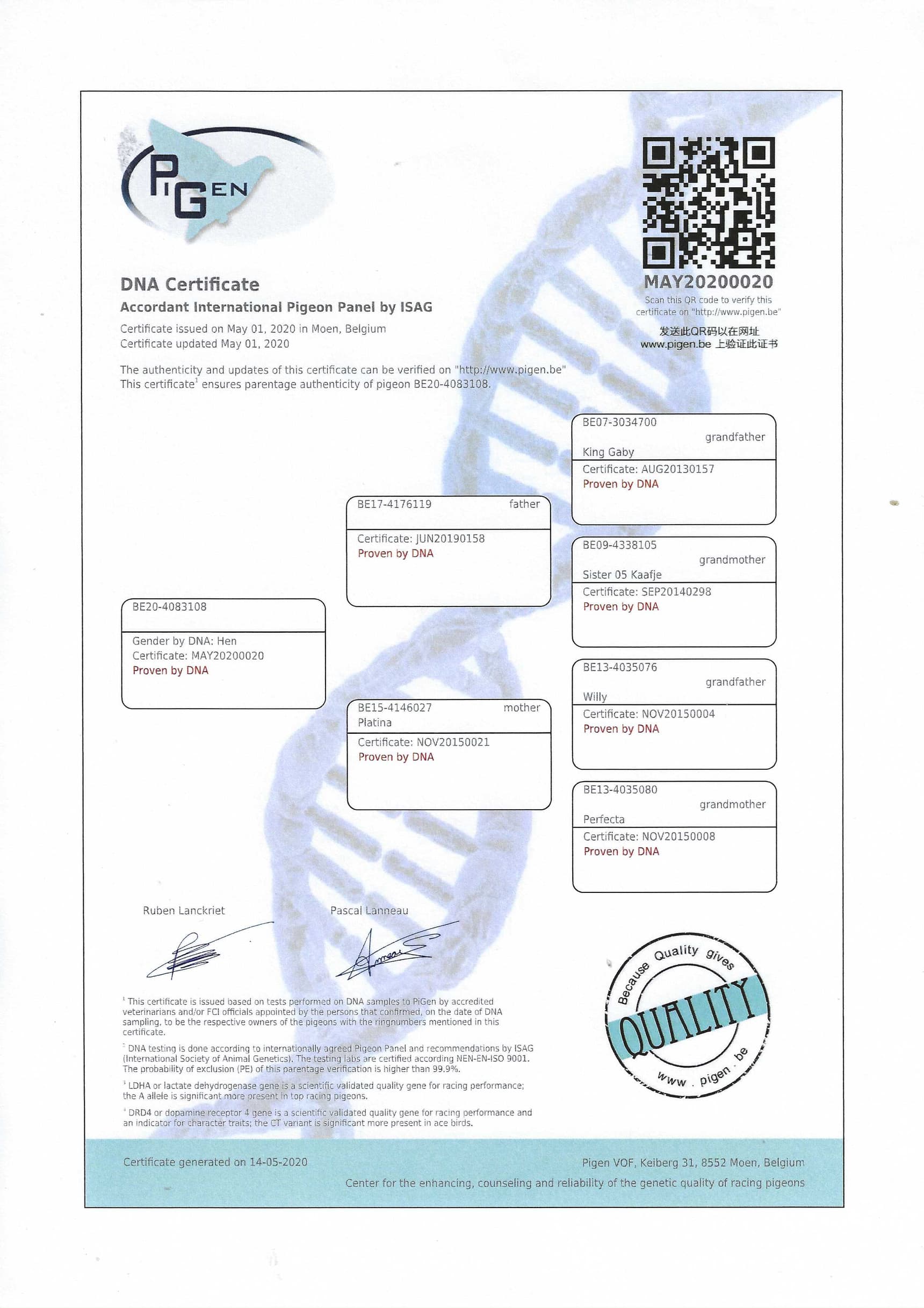 Son “King Gaby” x “Sister 05 Kaafje”