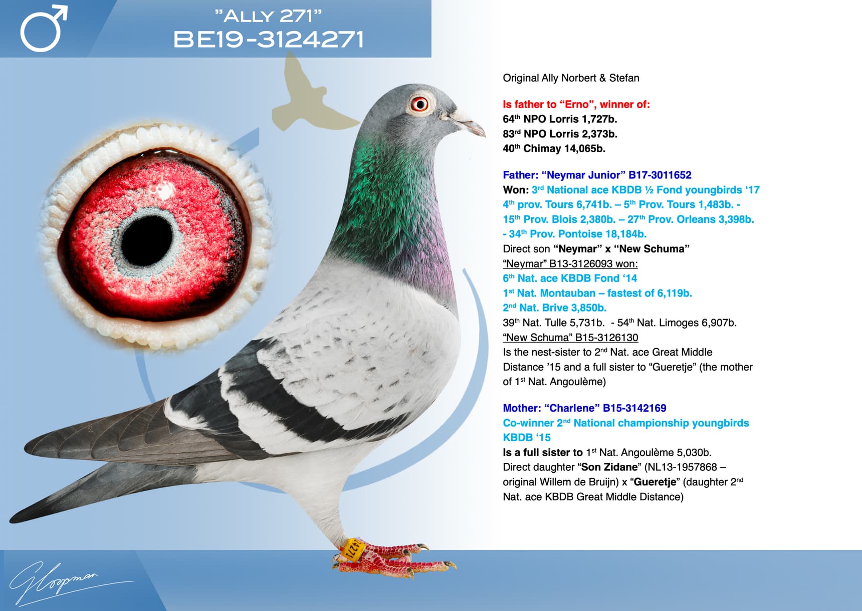 Direct daughter “Son Zidane” (NL13-1957868 – original Willem de Bruijn) x “Gueretje” (daughter 2nd Nat. ace KBDB Great Middle Distance)