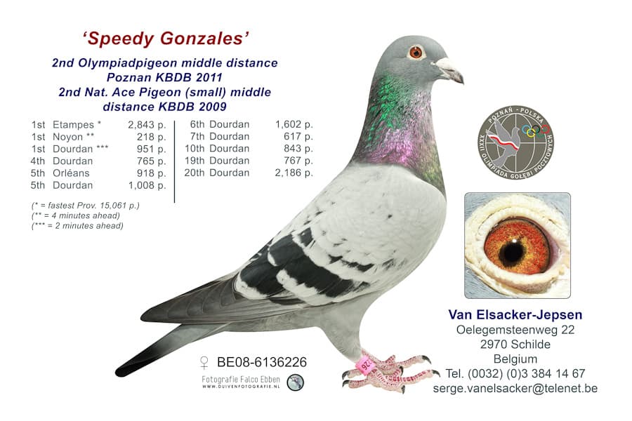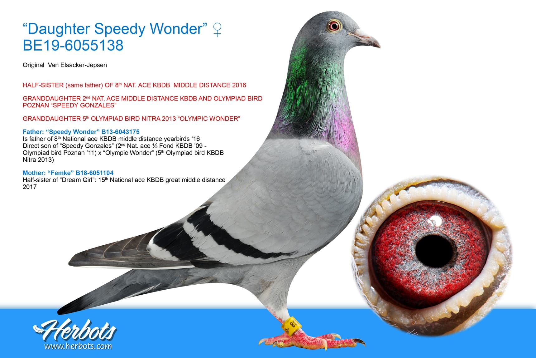 HALF-SISTER (same father) OF 8th NAT. ACE KBDB MIDDLE DISTANCE 2016 - GRANDDAUGHTER 2nd NAT. ACE MIDDLE DISTANCE KBDB AND OLYMPIAD BIRD POZNAN “SPEEDY GONZALES” - GRANDDAUGHTER 5th OLYMPIAD BIRD NITRA 2013 “OLYMPIC WONDER”