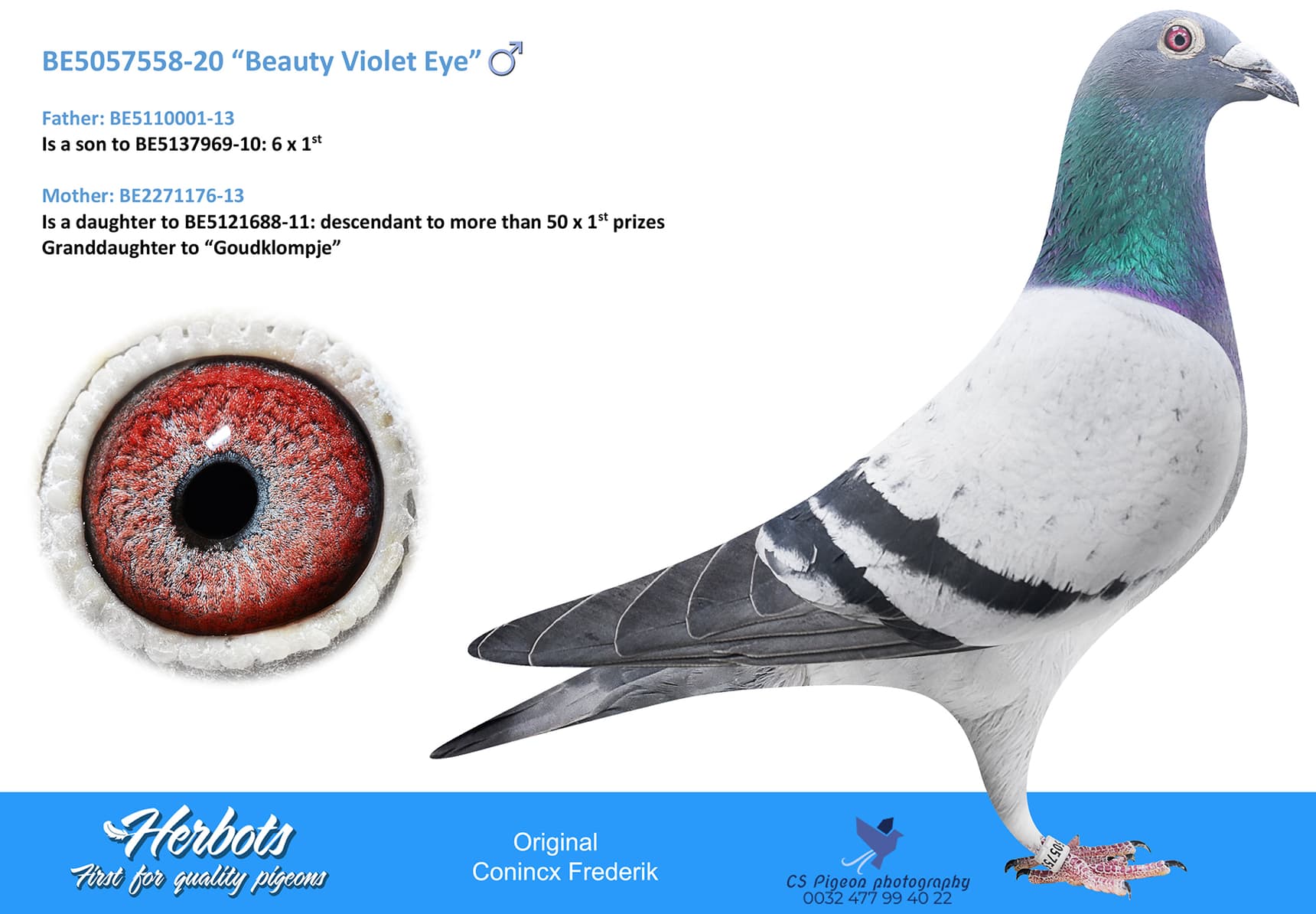 Daughter “956/10” 3 x Ace bird x “952/10” Strain Witkop Willy Briers