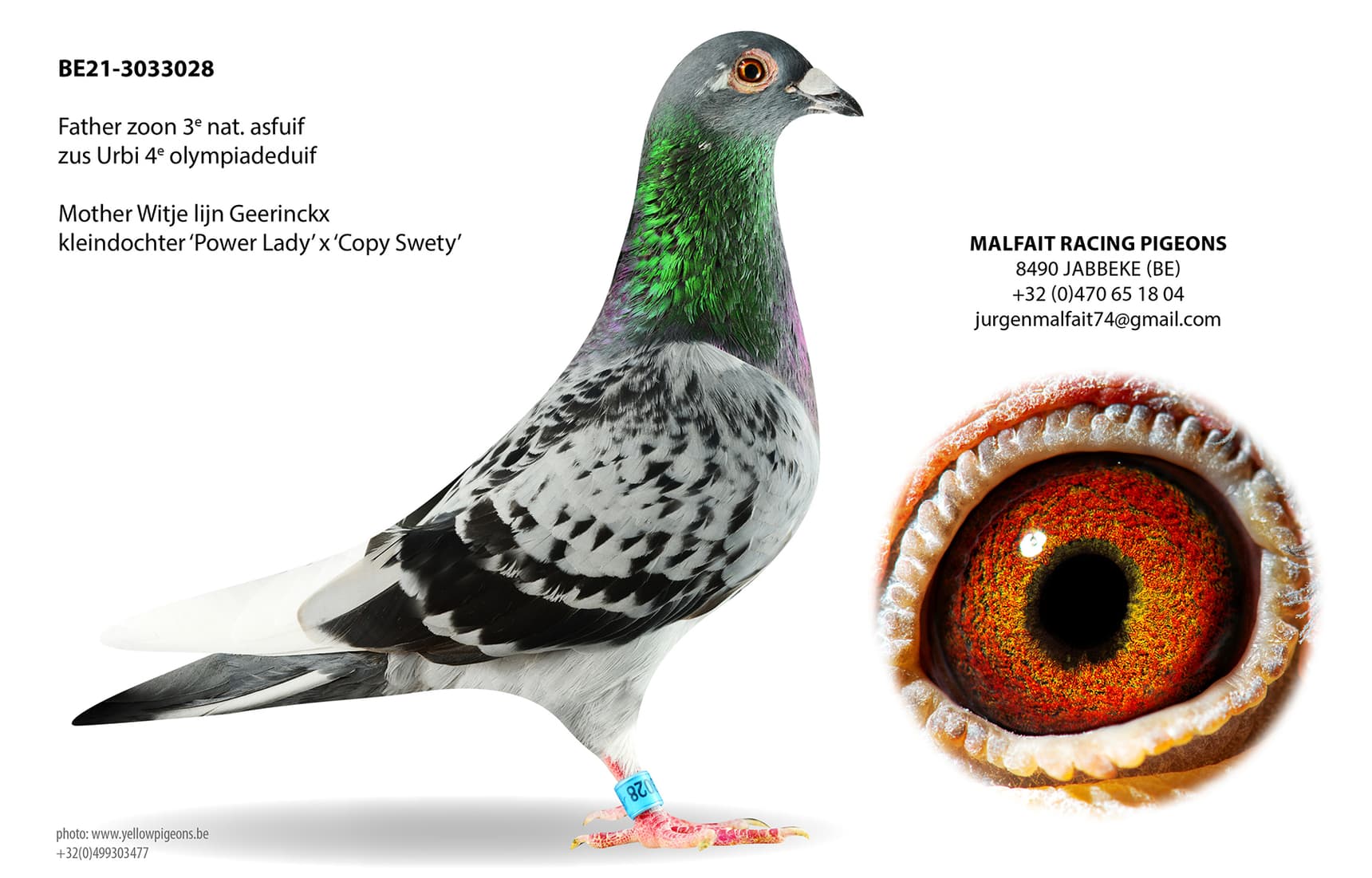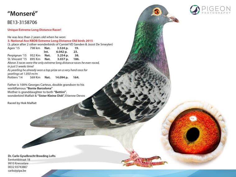 Father won 129 Nat. St.Vincent, 520 Nat. Agen and is grandson of 3 Nat. Ace pigeon E.L.D. KBDB