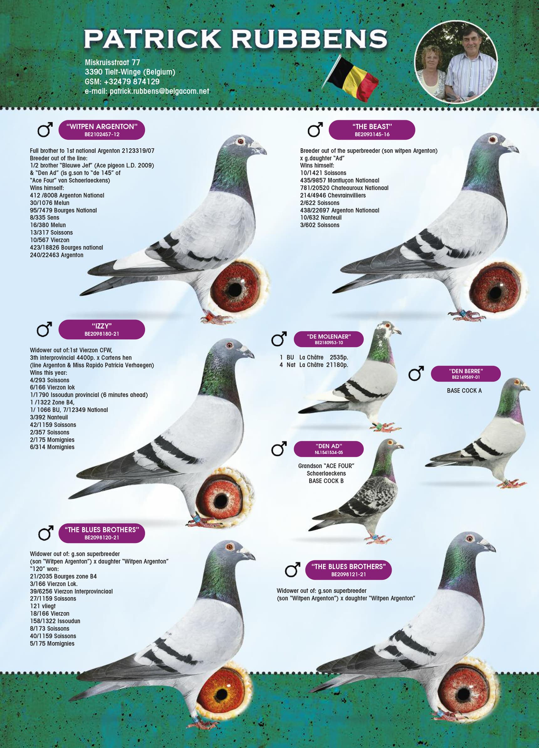 Direct daughter “Son Zamboester” (B14-2254964 – inbred “Miss Rapido” – Verhaegen Patricia ) x “B14-2240771” (Dehaes R. – strain: Santens x Peeters Van Leest x Louis Deleus x Celis C.)