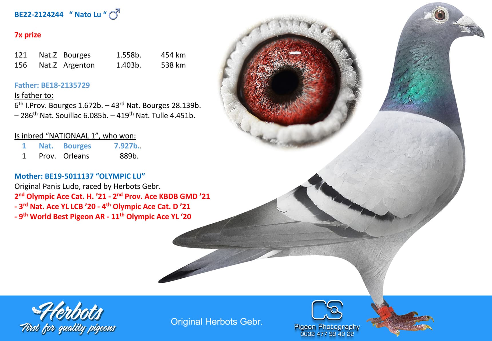 2nd Olympic Ace Cat. H. ’21 - 2nd Prov. Ace KBDB GMD ’21 - 3rd Nat. Ace YL LCB ’20 - 4th Olympic Ace Cat. D ’21 - 9th World Best Pigeon AR - 11th Olympic Ace YL ‘20