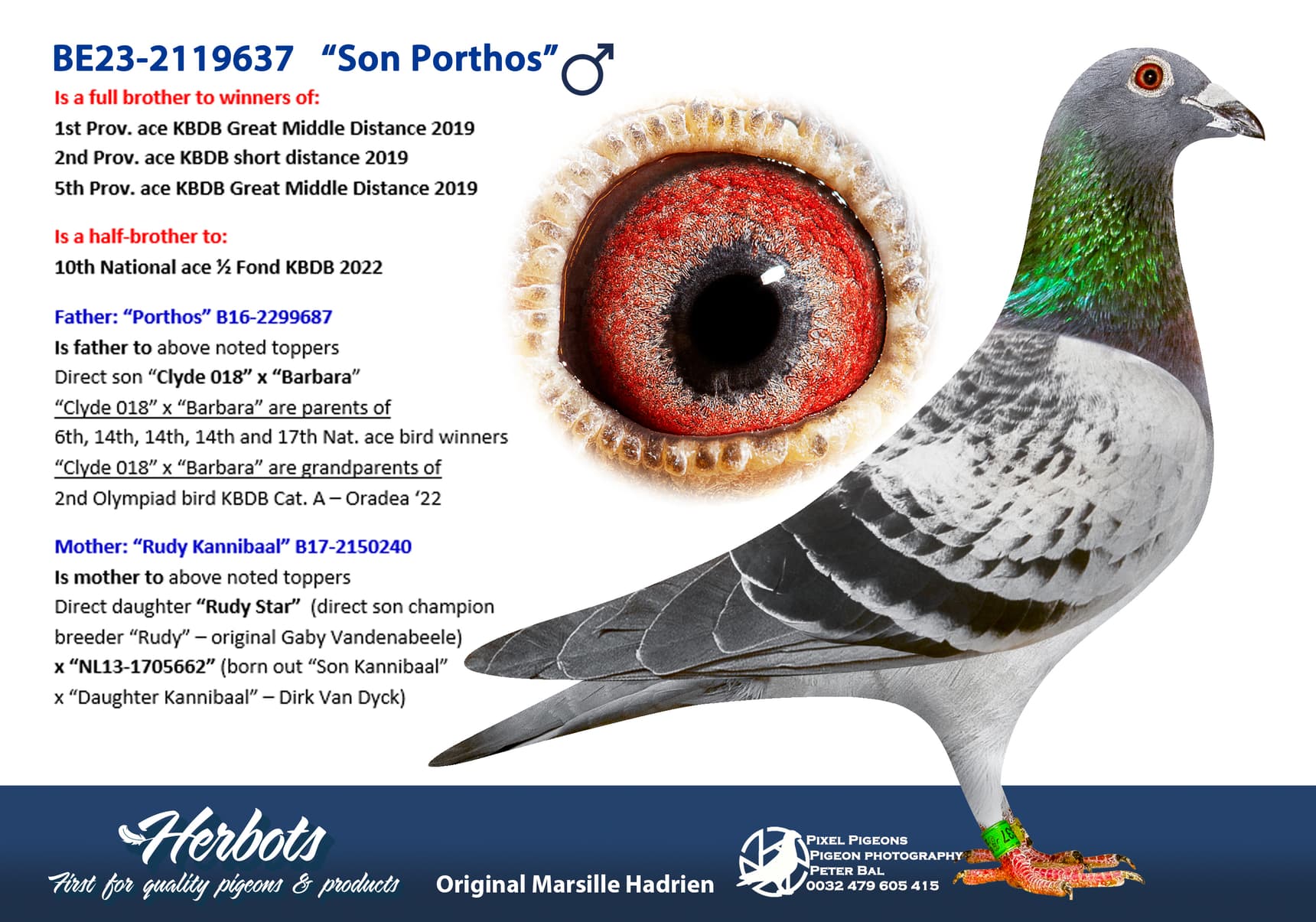 Direct daughter “Rudy Star” (direct son champion breeder “Rudy” – original Gaby Vandenabeele) x “NL13-1705662” (born out “Son Kannibaal” x “Daughter Kannibaal” – Dirk Van Dyck)